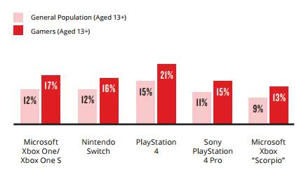 Nos Estados Unidos, um dos principais mercados de games e, principalmente, dos novos hardwares, os gamers que respoderam a pesquisa e sabem sequer da existência do PS4 Pro se resume a 27% e no caso do Scorpio, apenas 14%. Esses números caem para 21% e 11%, respectivamente, no resultado de público geral e para ínfimos 9% e 3% no resultado de não-gamers.