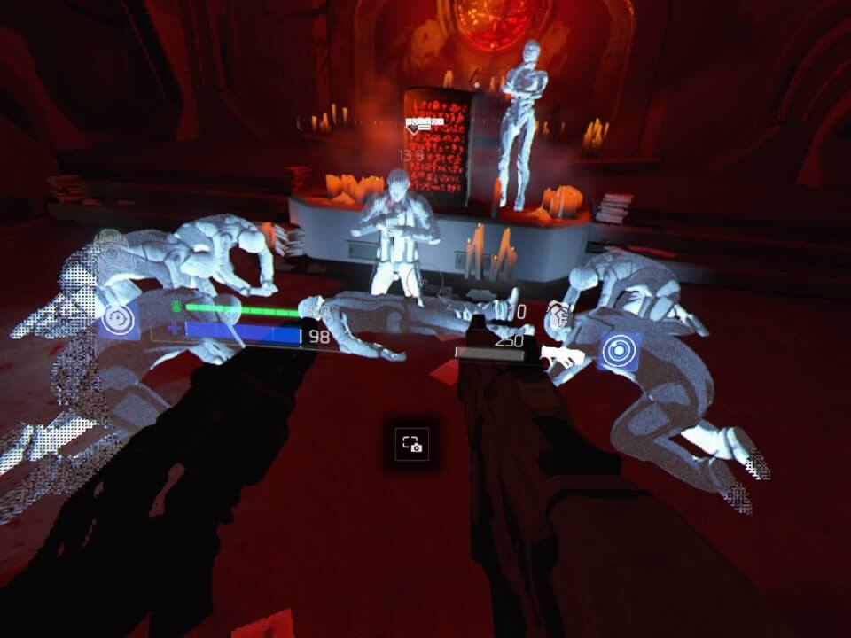 Como podem ver, a equipe de desenvolvimento se preocupou com todos os detalhes na hora de criar esta versão VR. Além de ter todo o conteúdo, armas e inimigos do jogo original, você será brindado com o mesmo estilo gráfico das fases, monstros dilacerados e muito mais. Um adicional que pude perceber foi a inclusão de alguns puzzles, porém, eles são tão simples que acabam sendo irrelevantes.