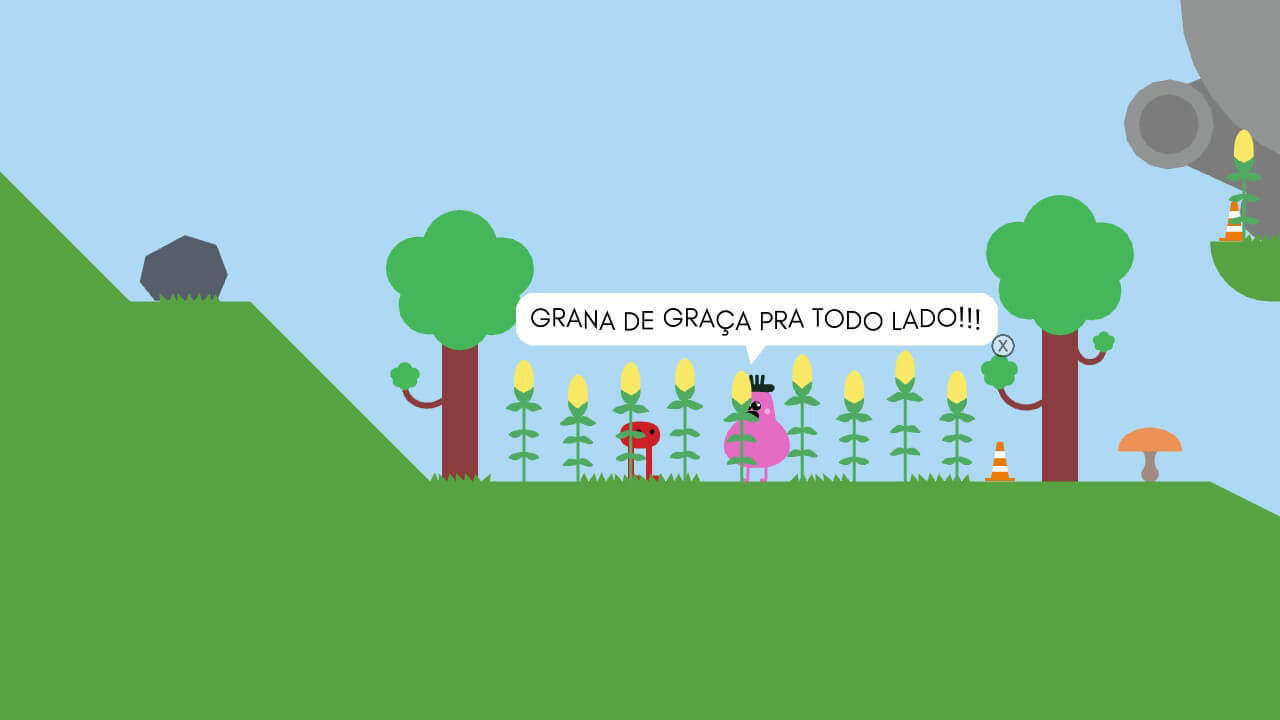 Existirá muitas quebras de barreira no jogo para mudar o gameplay por alguns momentos e te entregar boas surpresas. E por falar em surpresa, Pikuniku tem um modo para dois jogadores onde deverão trabalhar em conjunto para quebrar a cabeça e passar pelos desafios impostos a cada fase. Esse é um modo específico e a campanha não tem para dois jogadores.