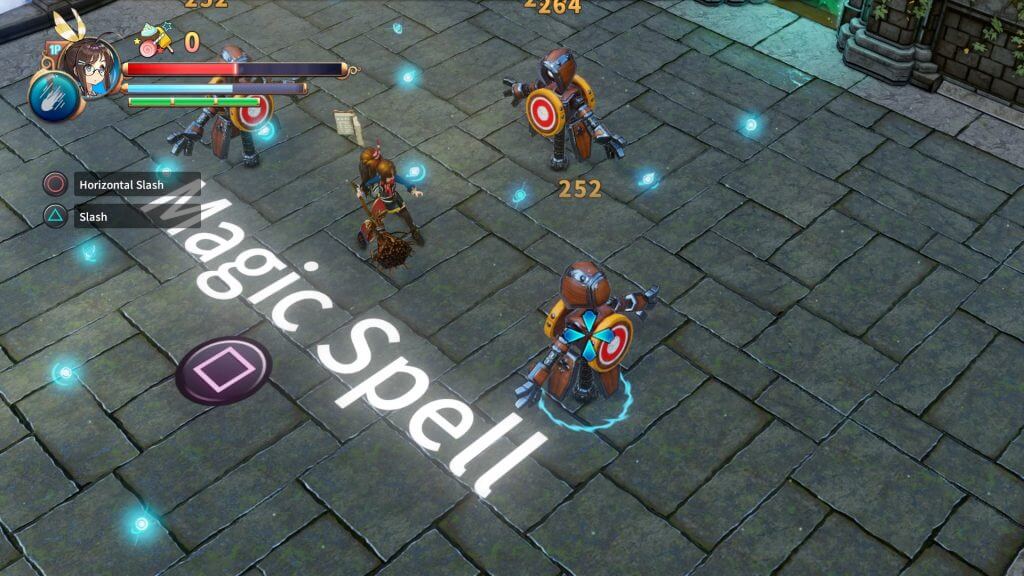 Remi também pode usar Lore para conjurar mágicas. Aqui temos mais variedades, são mágicas de dano direto, de suporte ou mesmo de defesa, tanto a habilidade com as armas quanto com as magicas tem seus níveis próprios que devem ser upados de forma separada, com doces, que é a moeda correte de Ragnoah.