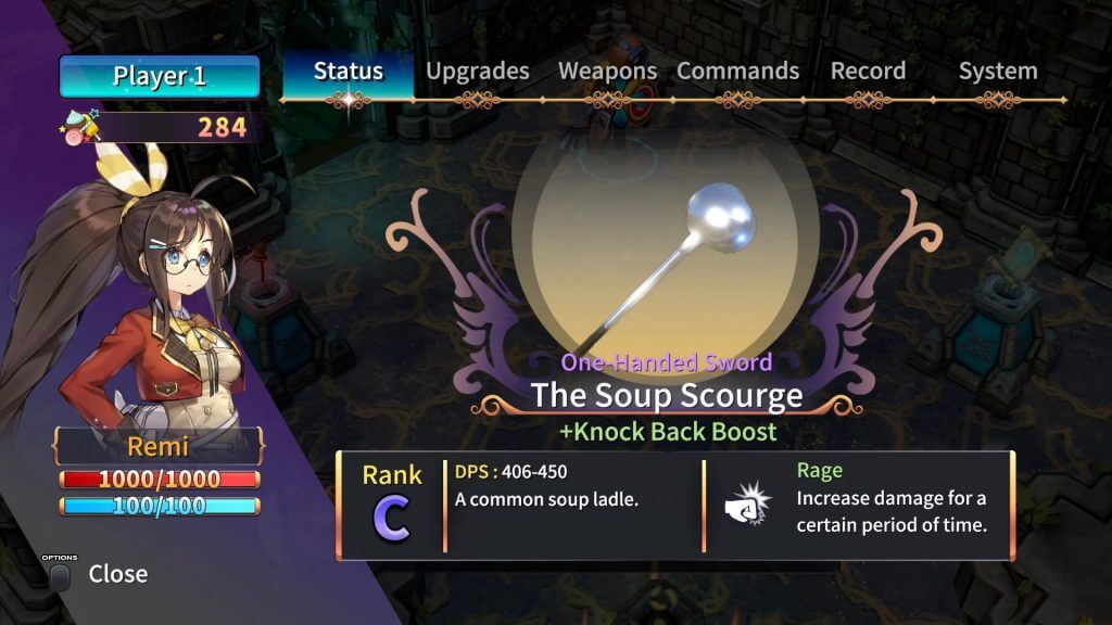 RemiLore é um jogo Rogue-lite beat’em up, que não se preocupe com história. Ela vai ser contada de forma corrida ao inicio de casa “fase”, basicamente você será Remi. Não temos background algum além dela ser uma auxiliar numa biblioteca enquanto, em certo dia, limpava a biblioteca Remi se depara com um livro diferente, que, para seu espanto começa a falar, revela ser Lore e a teleporta para outro mundo.