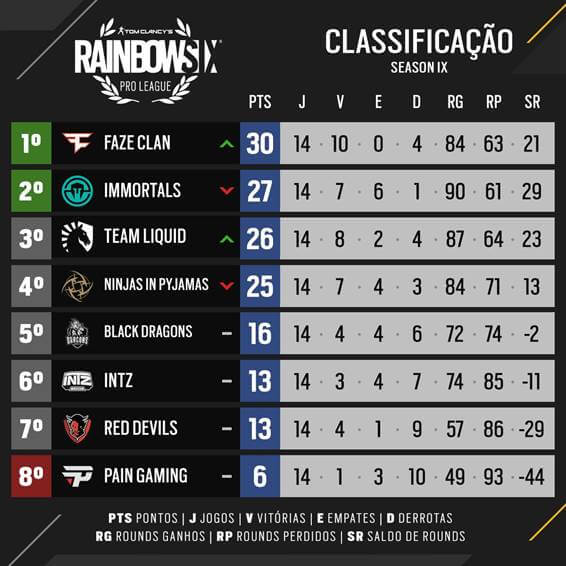 Com isso, Immortals e FaZe se garantiram nas finais da Pro League e o confronto entre as duas, que encerrou a rodada, deu o primeiro lugar da competição para a FaZe após a vitória por 7 a 5 sobre os Imortais. Os dois times repetem o feito alcançado durante a temporada passada, quando ambos também foram os dois representantes brasileiros nas finais mundiais do torneio sediado na Jeunesse Arena, no Rio de Janeiro. Na ocasião, a equipe de Jayme “Cyber” Ramos foi eliminada nas quartas de final. A FaZe, no entanto, alcançou a decisão e passou perto do seu primeiro título internacional ao ser derrotada pela europeia G2 Esports.
