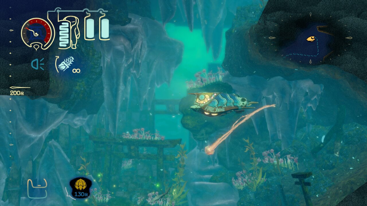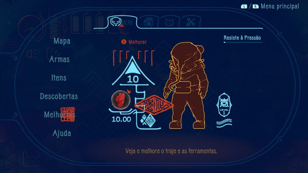 O interessante é que a cada nova evolução, você aumentará a resistência da sua roupa e poderá ir ainda mais fundo. Inicialmente o jogo parece ser um tanto linear, mas depois de ganhar seu submarino, o mapa se expande de forma inesperada e você terá muita exploração pela frente.