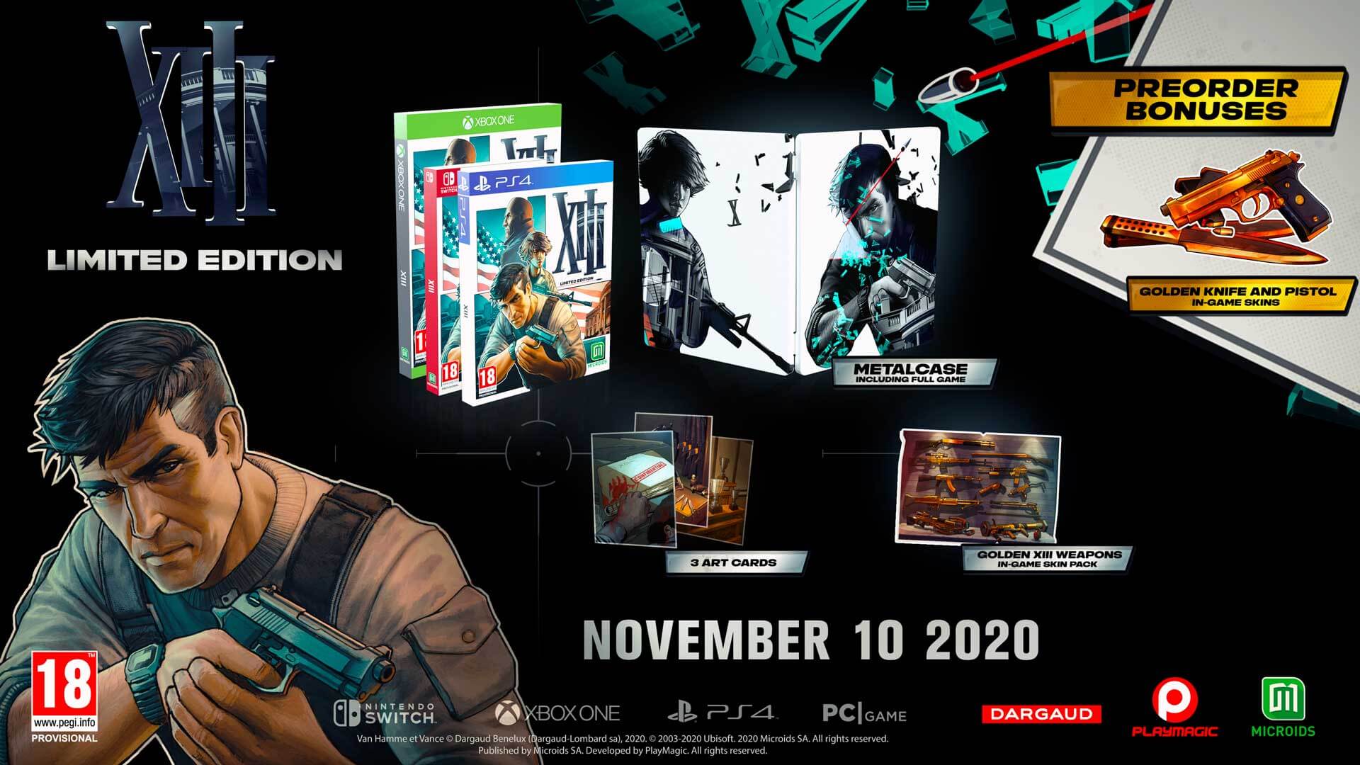 A produtora Microids e a desenvolvedora PlayMagic anunciou via website que o remake de XIII será lançado para PlayStation 4, Xbox One, Switch, PC via Steam dia 10 de novembro.