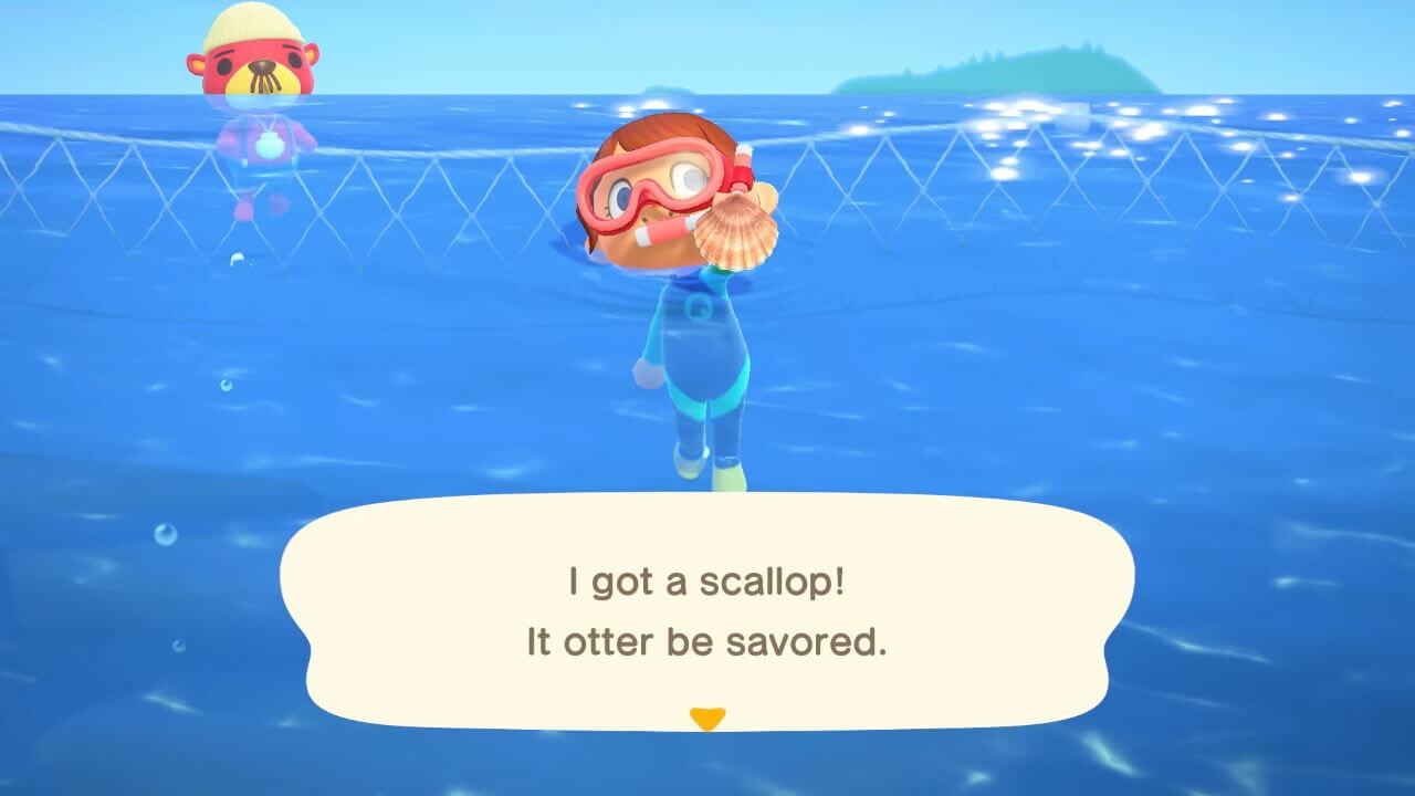 Há também um novo encontro para descobrir enquanto você explora o mar. Encontrar uma vieira no fundo do oceano levará a uma reunião com uma lontra chamada Pascal que, educadamente, perguntará se ele pode tê-las. Entregá-los a ele também fará com que he dê uma série de receitas, que incluem até mesmo uma Sereia para decorar sua casa.