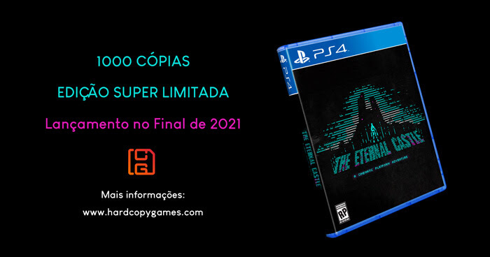 A Hard Copy Games tem o prazer de anunciar que The Eternal Castle [REMASTERED], dirigido por Leonard Menchiari, estará disponível no dia 24 de junho para Playstation 4 e 5 pelo preço de 79,99 BRL | 14,99 USD, com uma edição física limitada chegando no final de 2021. The Eternal Castle [REMASTERED] é uma aventura cinematográfica side-scroller que lembra obras-primas do gênero, como The Prince of Persia e Another World, desenvolvido pela equipe de 3 pessoas, TFL Studios.