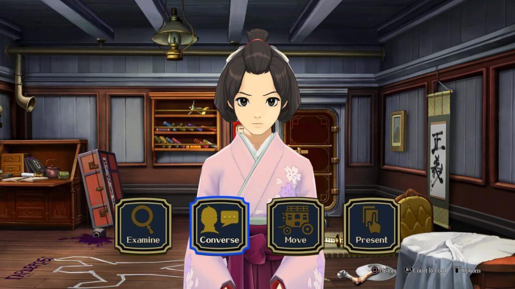 Durante minha análise de The Great Ace Attorney Chronicles!, percebi que em certos momentos é possível investigar locais para achar evidências no modo clássico de jogos do gênero, onde usamos um cursor para apontar onde queremos analisar a ambiente, que podem variar como a própria cena do crime ou algum lugar de interesse dos personagens. Aqui pode ser que novas falas surjam para entendemos mais a trama e é um risco deixar passar alguma conversa que pode ser usada a nosso favor.