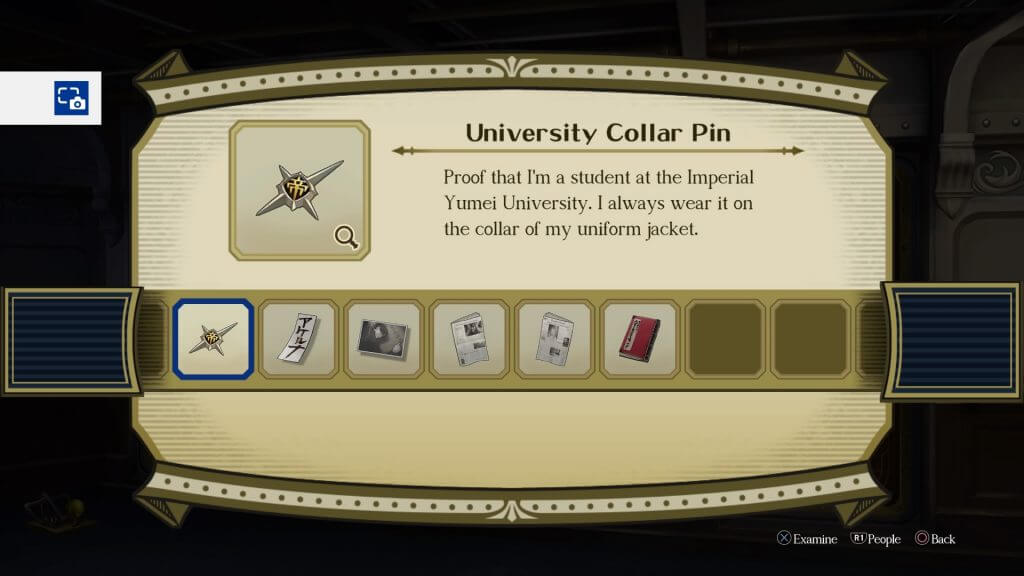 As provas podem ser examinadas ao girar o objeto ou usar um ponteiro como marcador para ler textos em documentos ou achar evidências despercebidas durante o enredo. Este recurso é uma das principais ferramentas, pois podemos usar esse para revelar identidades verdadeiras de certos personagens, confrontar falas imprecisas ou mentiras, acusar ou mesmo inocentar a si ou alguém.