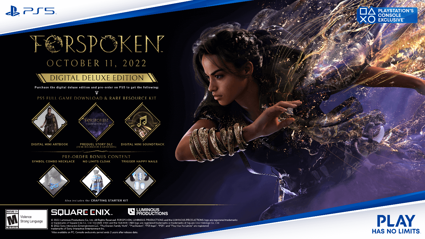 O jogo será lançado para PS5 e PC no dia 11 de Outubro. Também foi revelado que ele contará com duas versões de venda sendo a normal e a edição deluxe que vocês podem conferir as capas e itens abaixo.