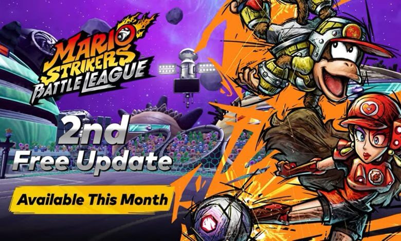 Essa segunda atualização gratuita para Mario Strikers: Battle League trará os personagens Pauline e Diddy Kong assim como um novo estádio e novo equipamento para os persoangens. Adicionalmente outras novidades como ranking individuais baseado nos seus pontos de habilidade, possibilidade de customizar os torcedores e efeitos no estádio chegarão ao jogo.