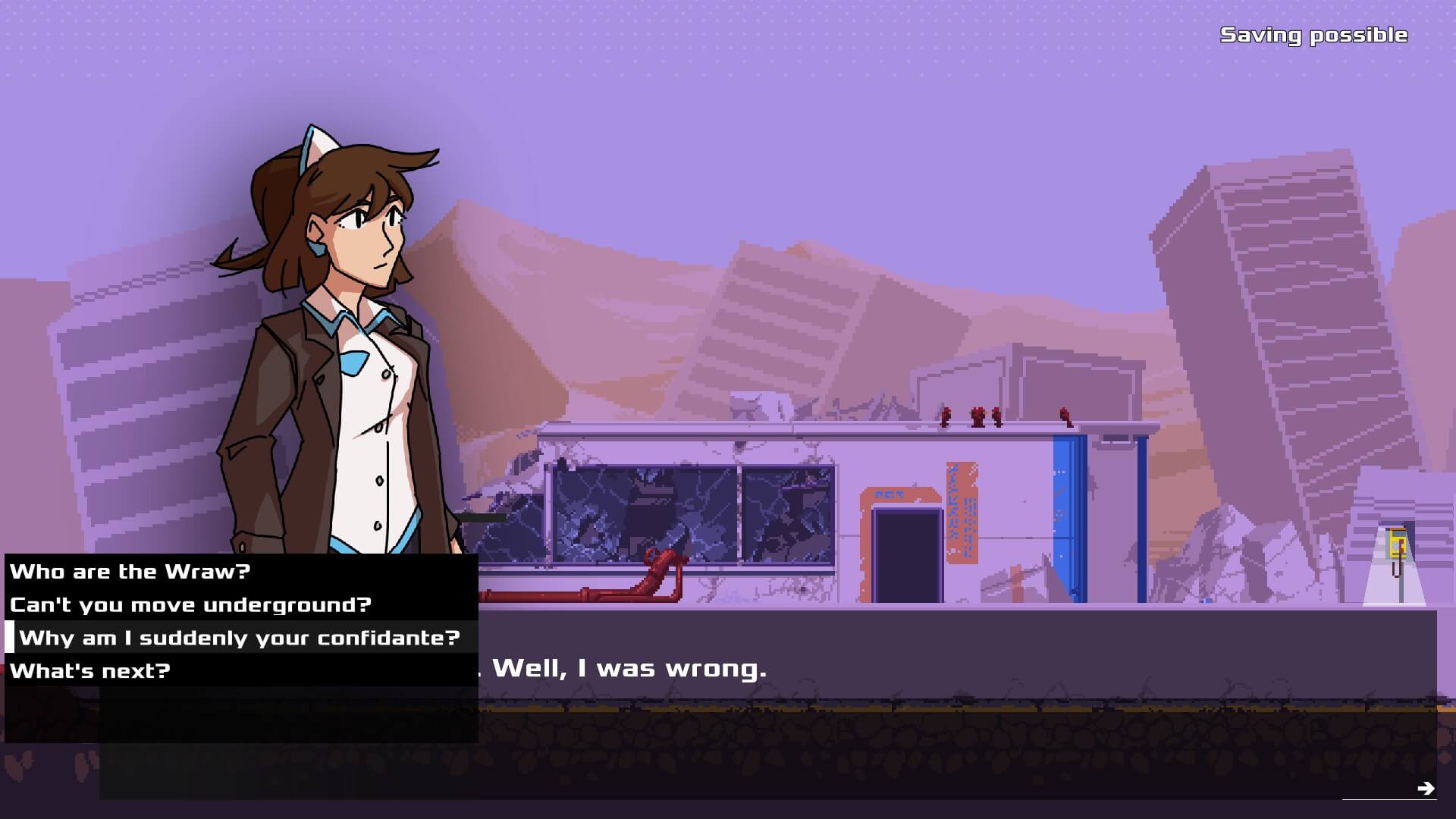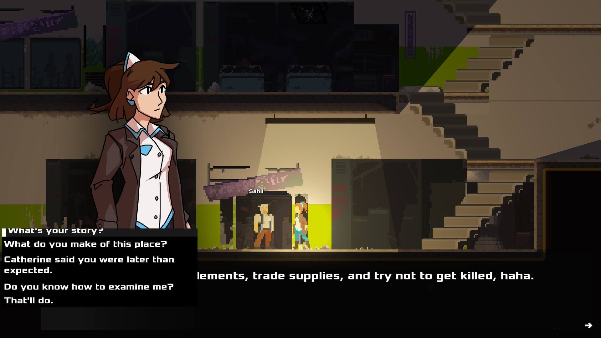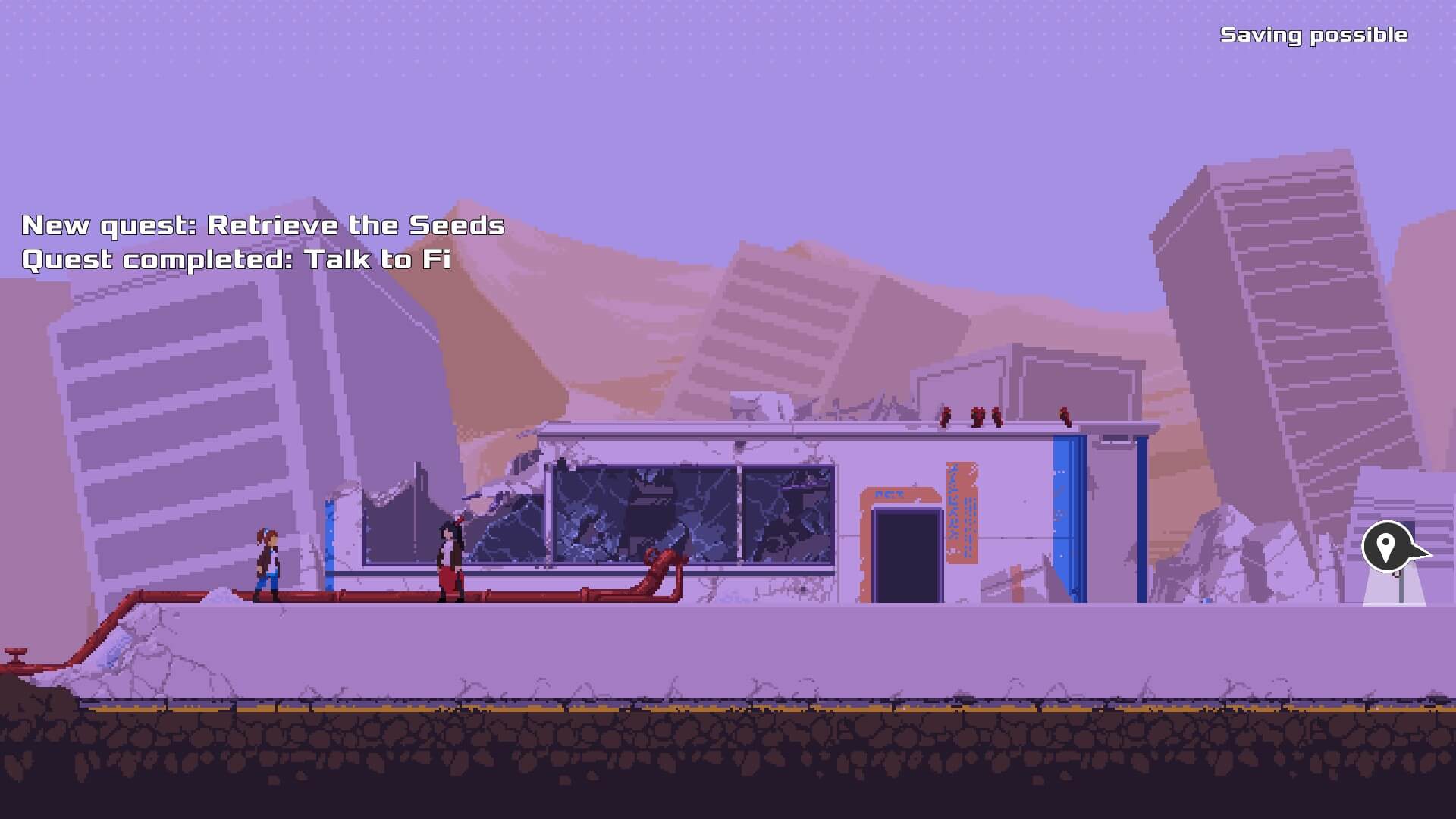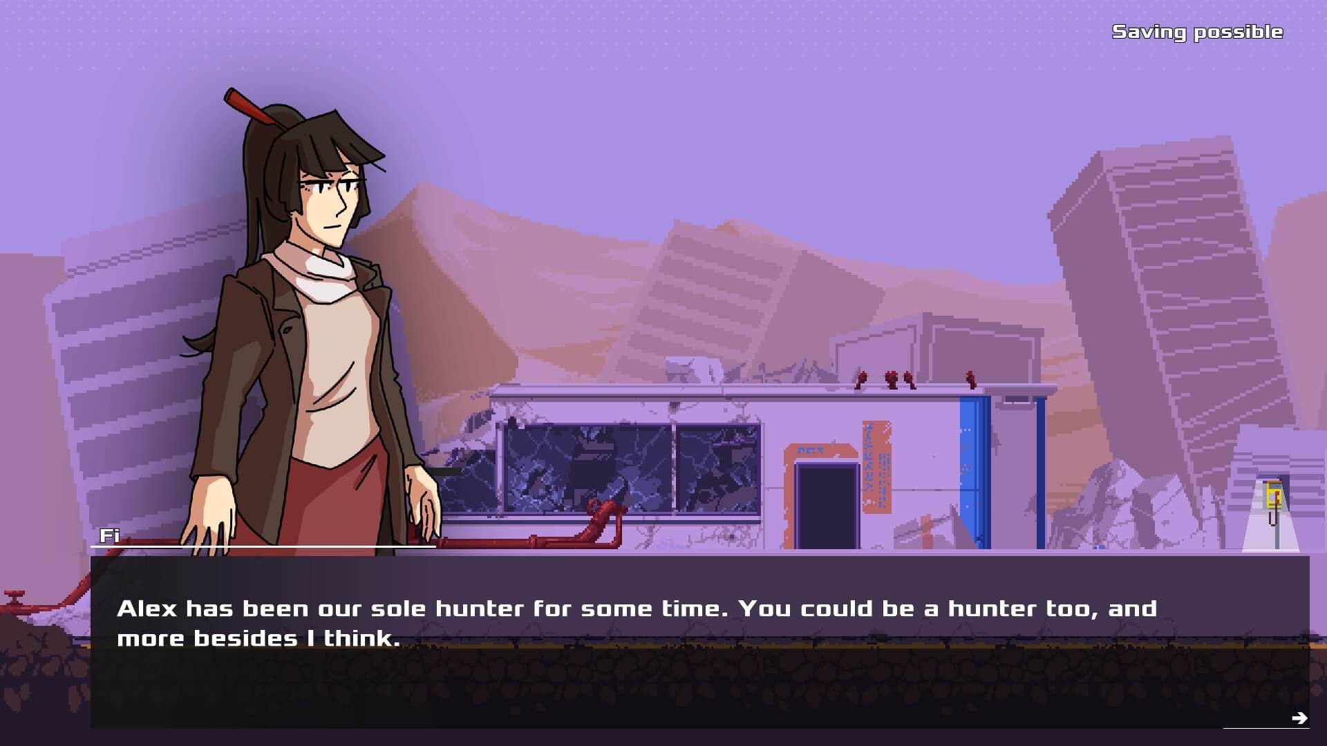 Kandria é um jogo de plataforma 2D com exploração, chegando bem próximo de ser metroidvania (faltou pouco para ser, viu…). A princípio, você é uma androide, que perdeu as suas memórias e agora a sua missão é ajudar um grupo de humanos a sobreviver, em um mundo pós apocalíptico, enquanto tenta buscar as suas memórias. Ou não: você pode apenas pescar, acumular riquezas e viver a sua vida sossegadamente.