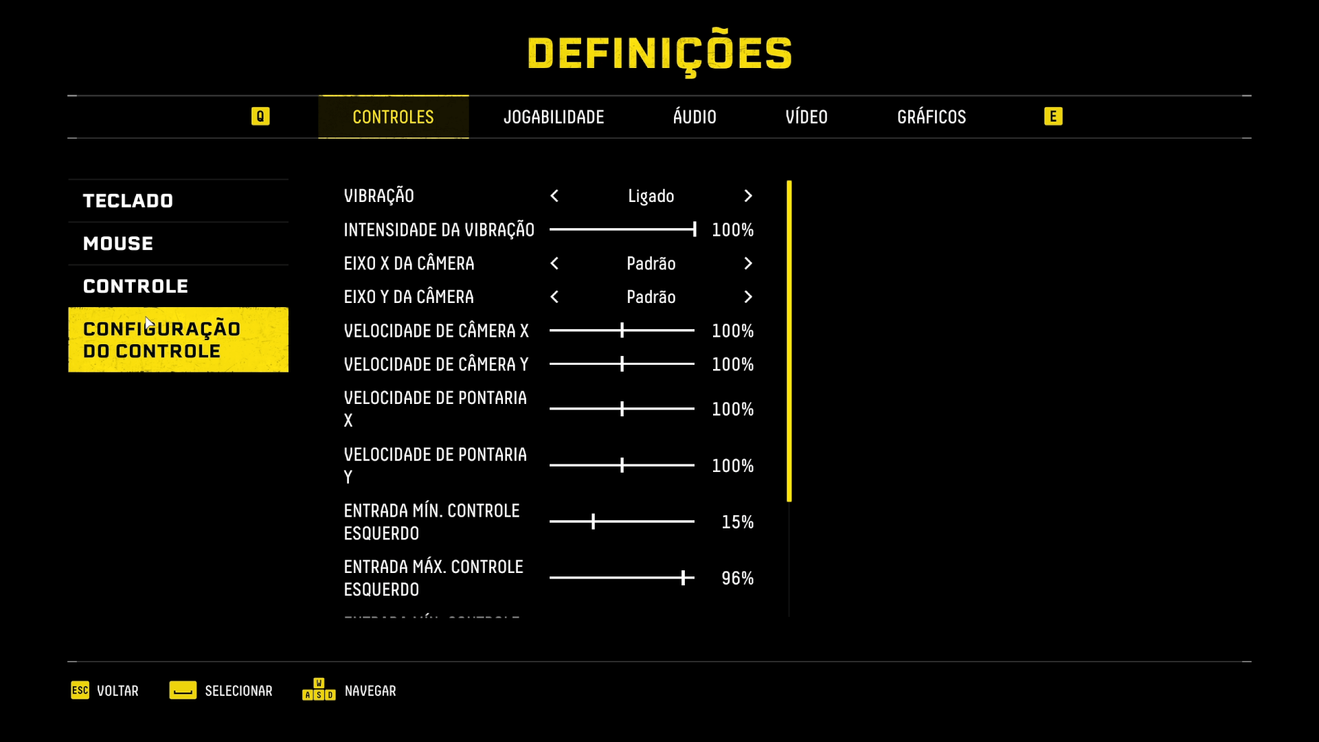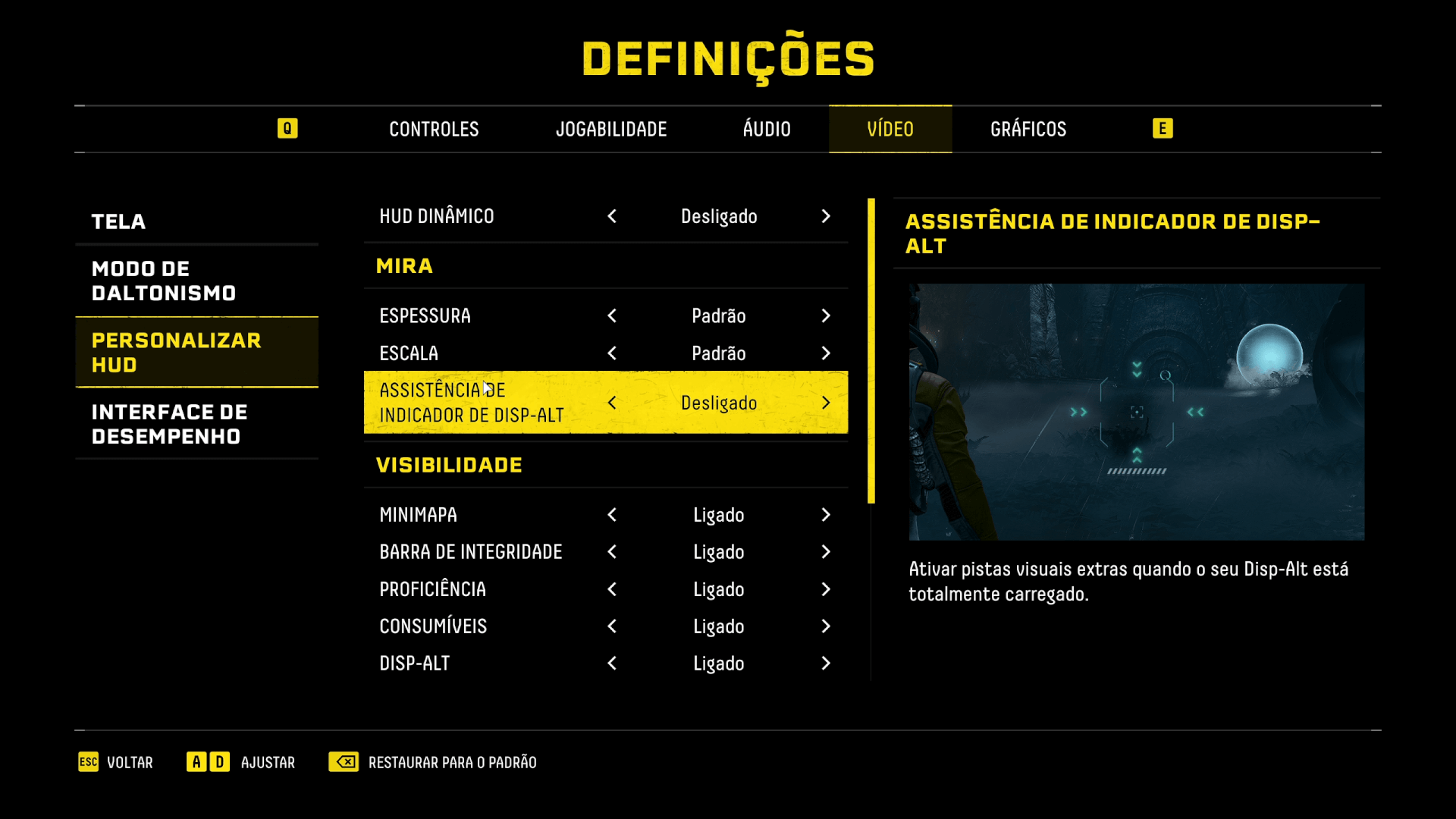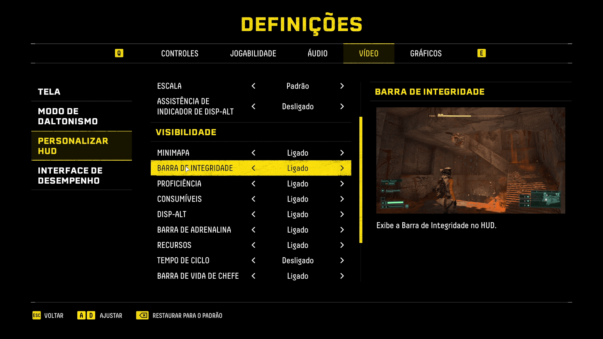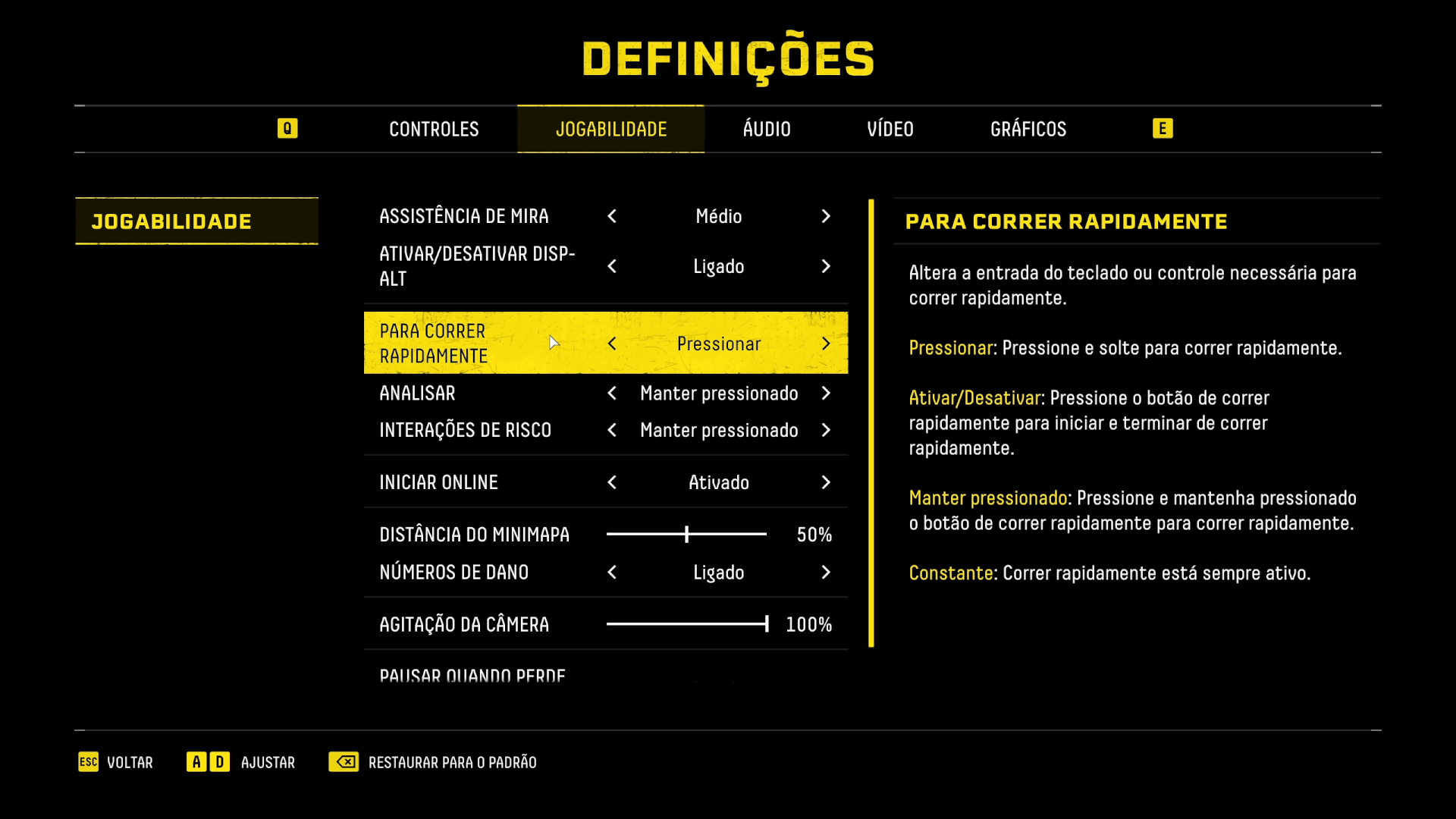 Na parte da jogabilidade você tem controle da assistência da mira, mostrar ou não o dano dos inimigos, opções de como irá abordar pontos de interesse e mais.