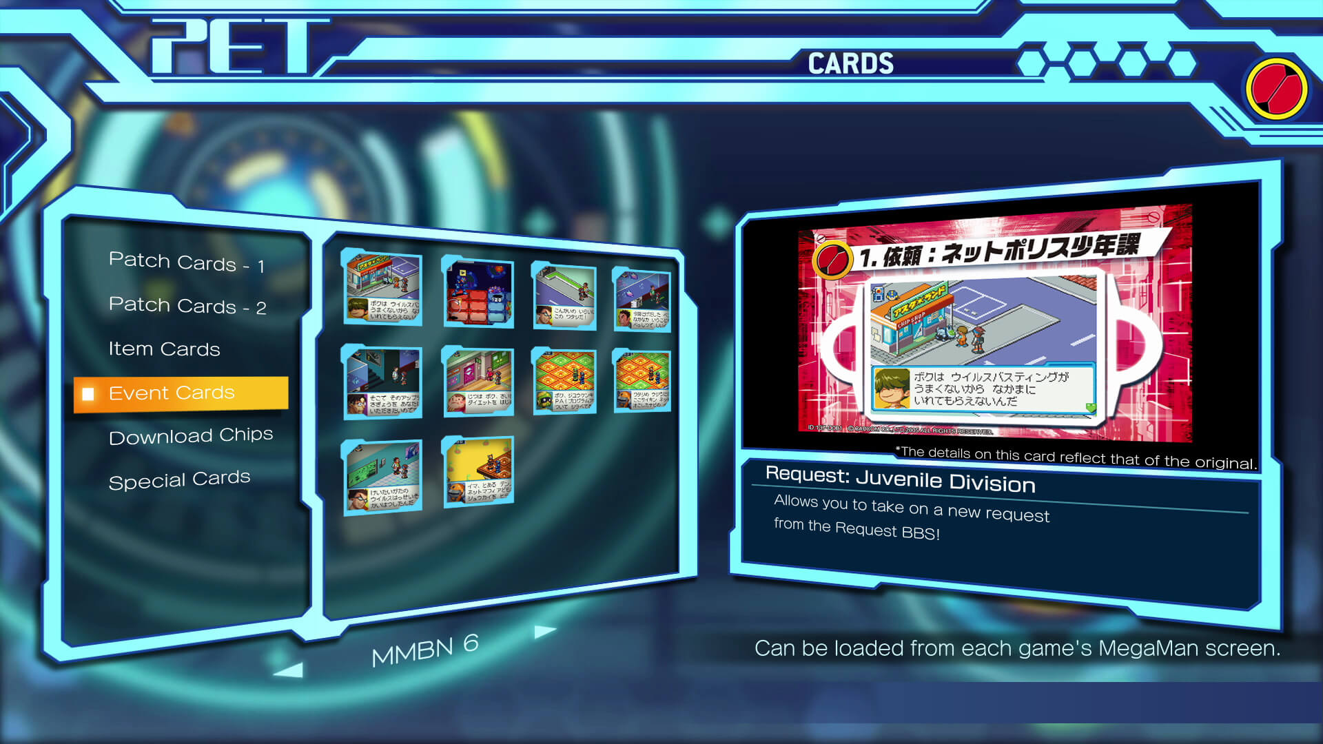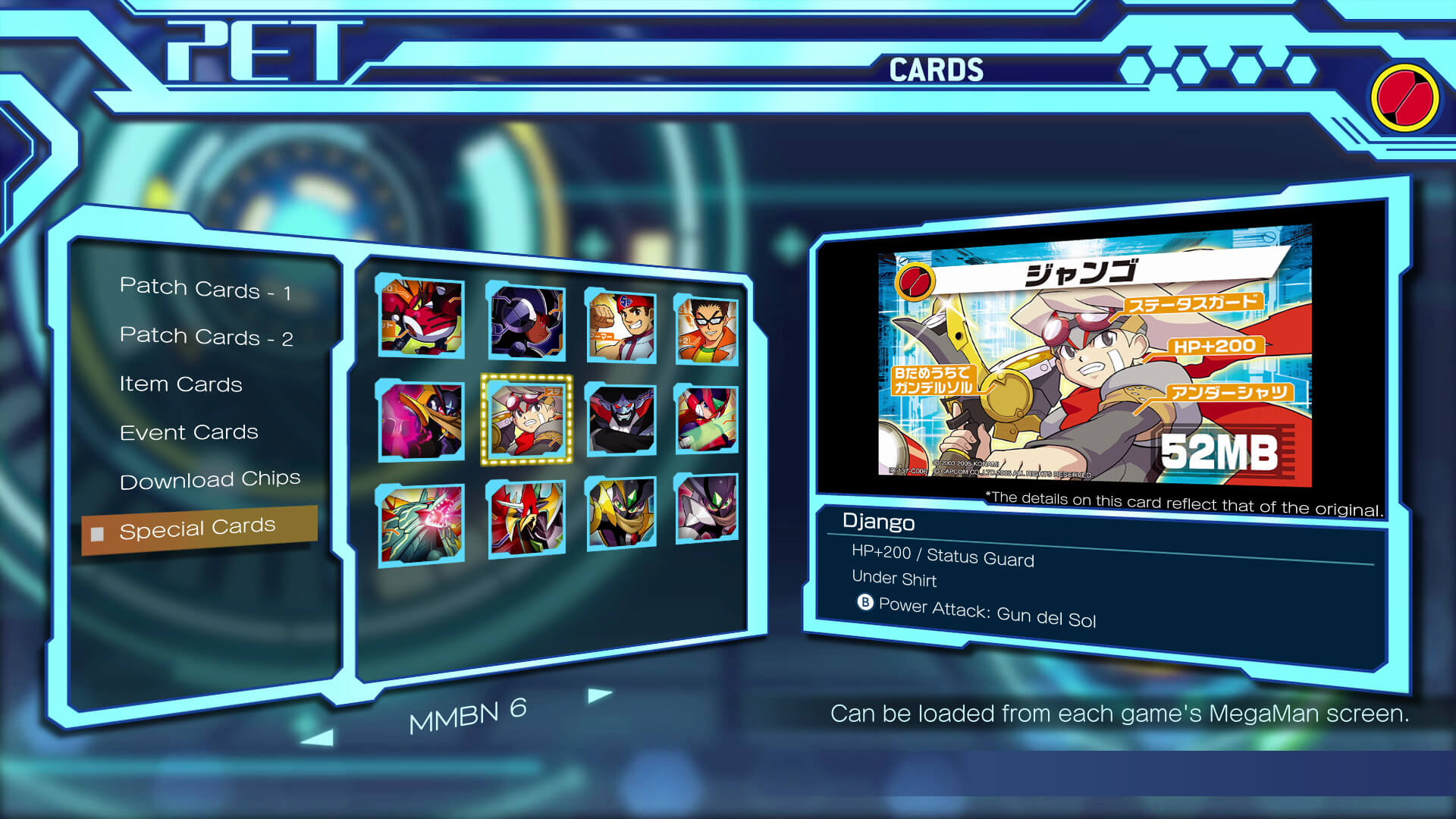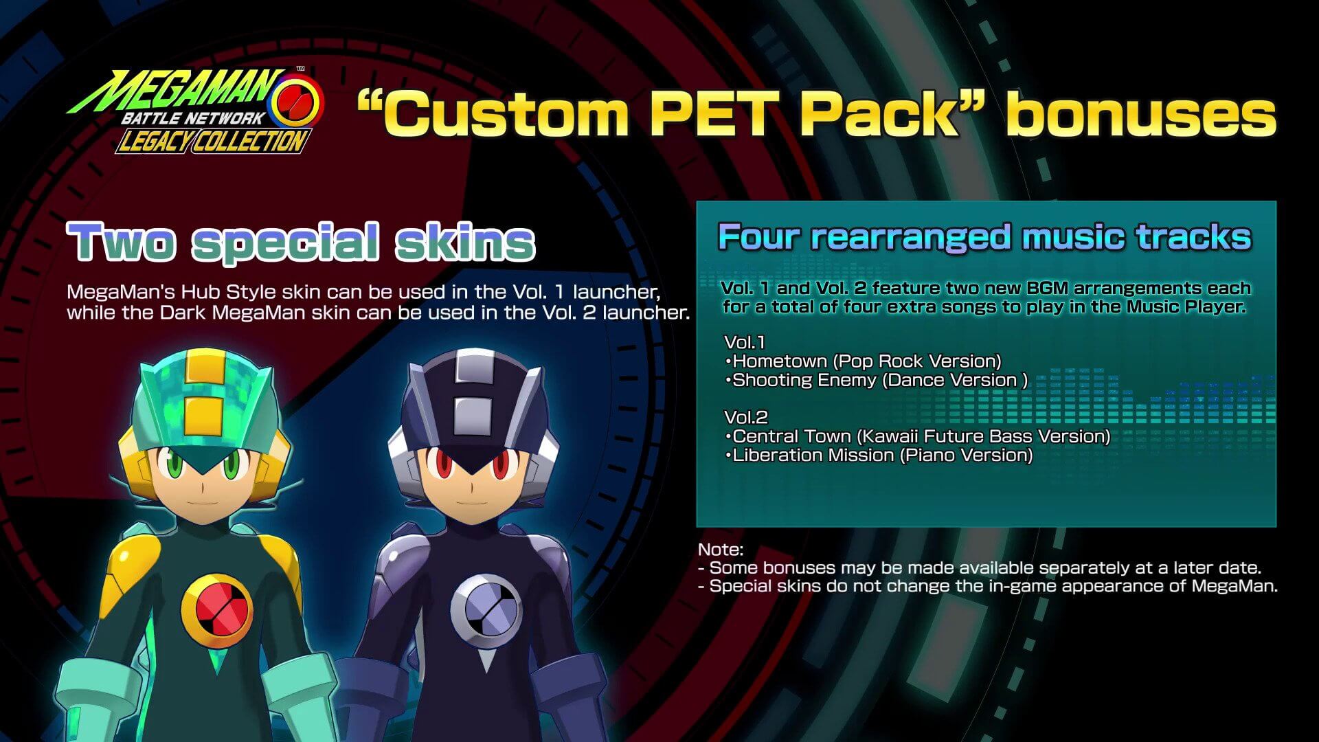 - Inclui todos os 499 Patch Cards – Todos os 499 Patch Cards criados para Mega Man Battle Network 4 em diante serão incluídos na coleção. Anteriormente, esses eram cartões físicos vendidos apenas no Japão e precisavam ser digitalizados no jogo.