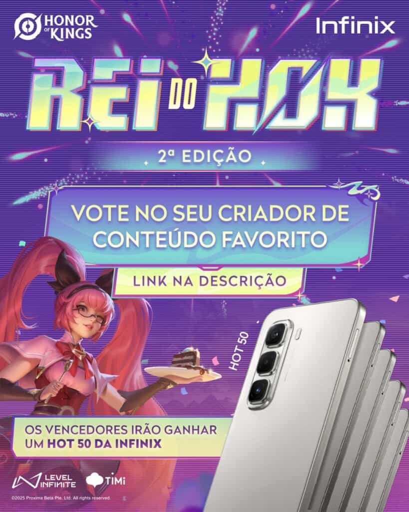 Este ano, a premiação Rei do HoK conta com o patrocínio da Infinix, que também participará da transmissão especial. Os vencedores receberão um dispositivo Infinix Hot 50 como prêmio. A votação ainda está aberta, permitindo que os fãs escolham seus criadores de conteúdo preferidos.