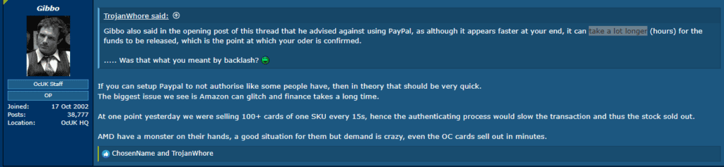 Além disso, o OcUK mencionou um detalhe sobre o registro de compras, afirmando que consumidores que utilizarem formas de pagamento diferentes do PayPal podem registrar suas compras mais rapidamente, devido ao tempo que o PayPal leva para liberar os fundos. Esta recomendação é específica para o OcUK e pode não se aplicar a todos os casos.