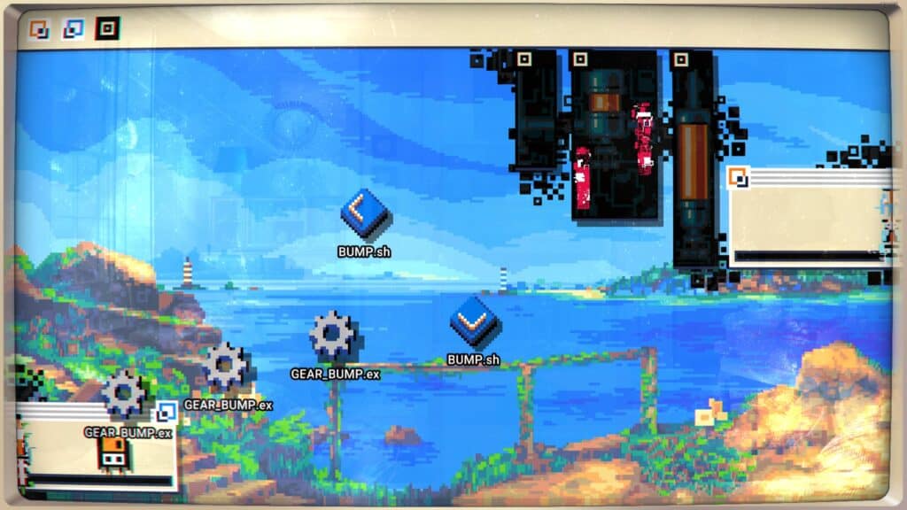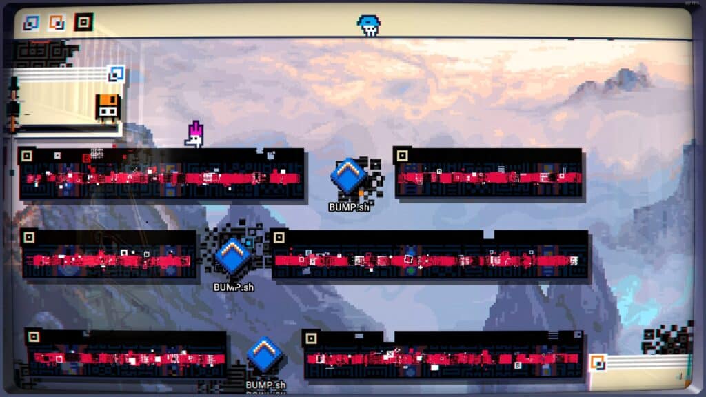 Com o tempo, novas mecânicas vão sendo adicionadas, tornando o jogo cada vez mais complexo. Algumas janelas começam a se expandir e retrair conforme o jogador se movimenta, exigindo um controle preciso do espaço e do tempo. Em seguida, entram em cena comandos especiais, onde certos saltos só podem ser executados uma única vez, forçando o jogador a calcular cada movimento com exatidão. Além disso, Mainframes inclui colecionáveis que funcionam como pequenos “trabalhadores virtuais”, servindo tanto como desafios extras quanto como elementos que enriquecem a ambientação.