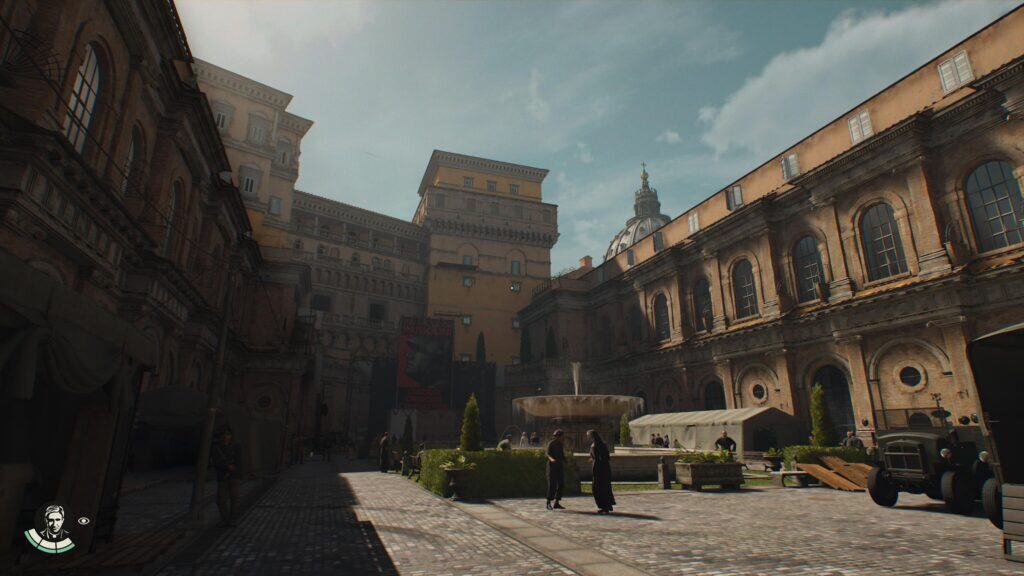 Um bom exemplo de desempenho sólido foi observado na Praça do Vaticano, conhecida por ser uma das áreas mais exigentes do jogo. Mesmo ali, o PS5 entregou uma performance consistente e sem engasgos relevantes, demonstrando uma boa adaptação da engine ao hardware do console.