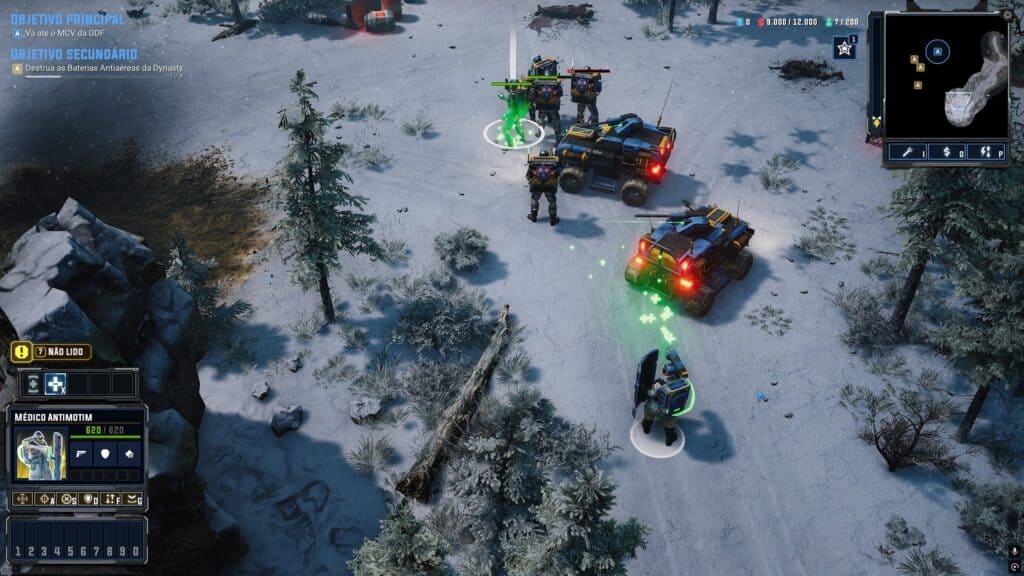 Outro destaque são os especialistas, unidades únicas com habilidades especiais como camuflagem, cura ou ataques de alto impacto. Embora não sejam exatamente “heróis” como em Warcraft III, esses personagens cumprem papéis cruciais em missões mais complexas, lembrando figuras icônicas como Tânia de Red Alert. O uso correto desses especialistas pode virar uma partida, mas Tempest Rising, por vezes, apresenta essas unidades de maneira muito rápida e em meio a combates intensos, o que pode comprometer a compreensão imediata de suas funções.