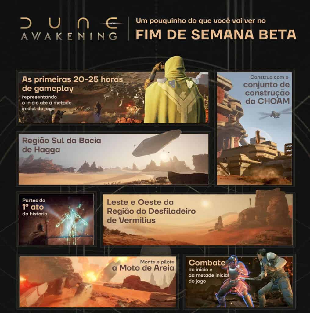 A Funcom anunciou que o beta global de Dune: Awakening ocorrerá de 9 a 12 de maio. Durante esse período, os jogadores terão a oportunidade de explorar o mundo de Arrakis e experimentar as primeiras 20 horas do jogo, incluindo grande parte do Ato 1 da história. A narrativa do jogo, baseada na obra de Frank Herbert, promete conectar os jogadores ao universo de Dune em uma experiência de sobrevivência em mundo aberto.