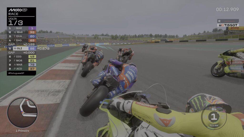 O som também impressiona. Embora eu não acompanhe os GPs na vida real, o áudio das motos soa realista e imersivo, convincente o suficiente para acreditar na parceria citada entre a produtora e as equipes reais para capturas em pista. A experiência auditiva lembra a qualidade encontrada em jogos modernos de Fórmula 1.