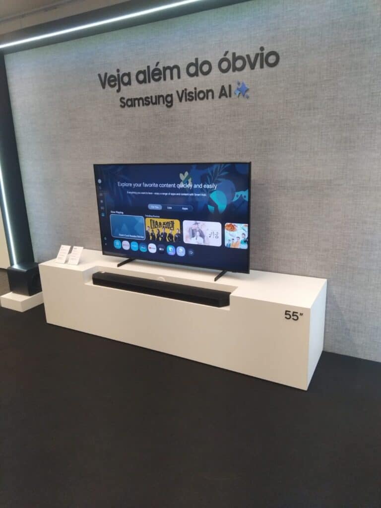 Durante uma apresentação conduzida por Alexandre Gleb, Gerente de Produto de TV da Samsung, fomos introduzidos à trajetória de lançamentos da empresa. Desde a estreia da QLED TV em 2017, a tecnologia evoluiu anualmente, culminando em marcos como a resolução 8K em 2019, a linha Big TV em 2023, e o advento da Samsung AI TV no ano anterior. Para 2025, a visão se consolida sob o lema: “Veja além do óbvio”.