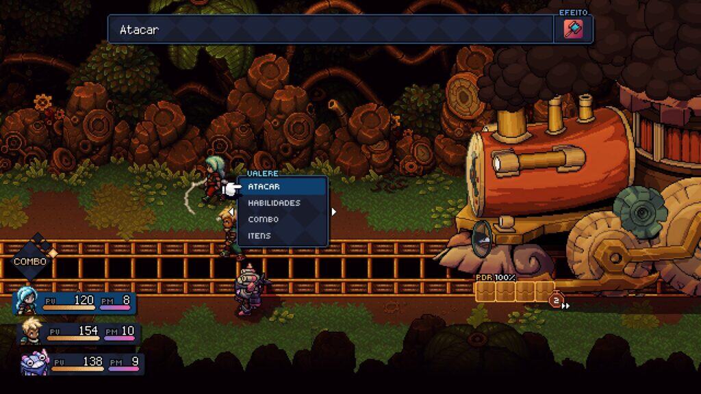 O gameplay de Sea of Stars já era um de seus pontos altos, com um sistema de batalha em turnos enriquecido por ações contextuais, como pressionar botões no momento certo para defender ou potencializar ataques. Com a DLC Throes of the Watchmaker, essa dinâmica de combate atinge um novo nível de sofisticação. Artificer, por exemplo, introduz uma mecânica em que, após lançar bolas de canhão, o jogador deve posicioná-lo com uma cama elástica para interceptar e rebater os projéteis contra os adversários. Valere, por sua vez, ganha um ataque de salto com vara, no qual manter o botão de comando pressionado permite carregar o golpe, resultando em maior dano.