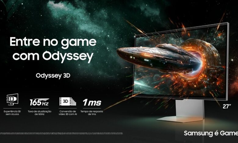 A Samsung lançou no Brasil o monitor gamer Odyssey 3D, que apresenta imagens tridimensionais sem a necessidade de óculos especiais. O monitor se destaca por sua tela 4K, taxa de atualização de 165Hz e tempo de resposta de 1ms, características que visam aprimorar a experiência dos jogadores.