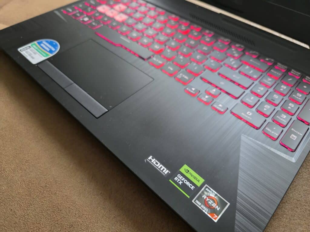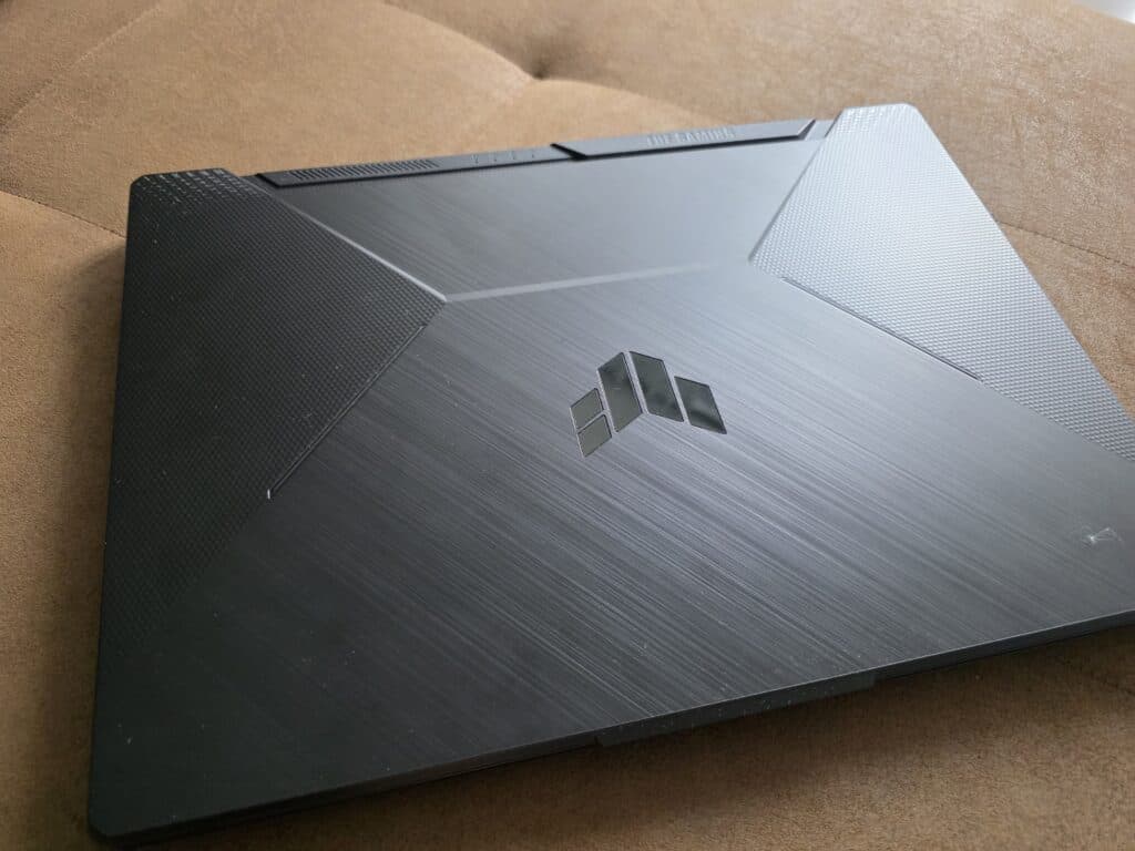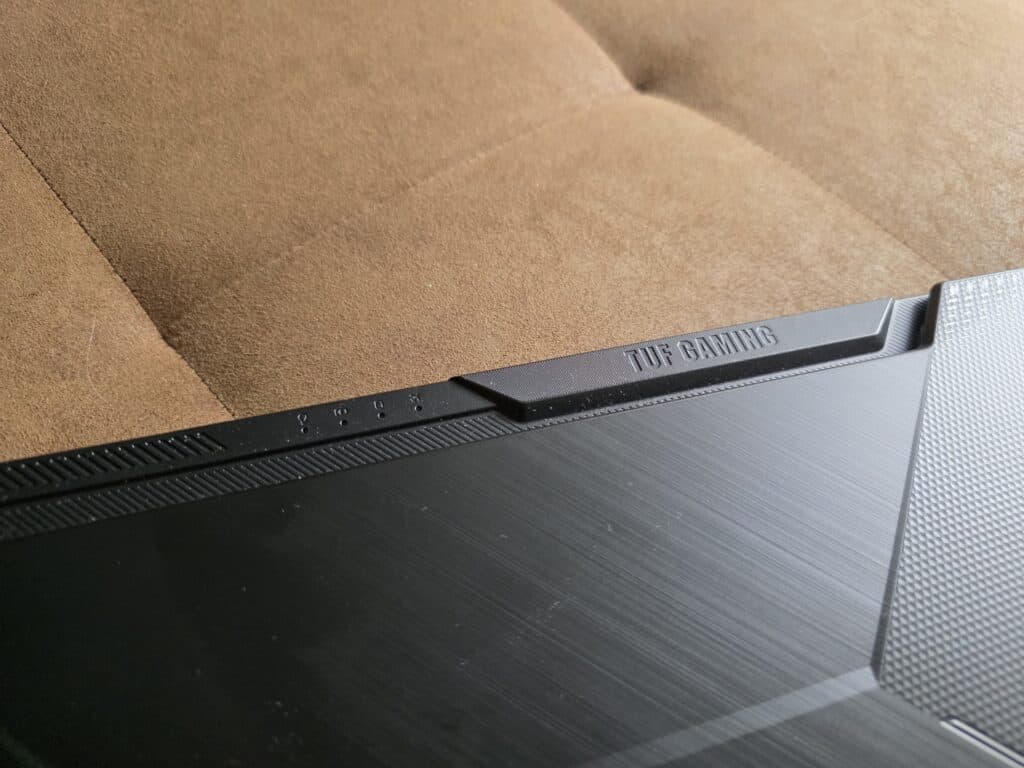 O TUF A15 apresenta um design robusto, característico da linha TUF da Asus, com certificação militar, garantindo resistência a impactos e condições adversas. A tampa em alumínio e o restante do chassi em plástico de alta qualidade conferem ao notebook uma aparência sólida e durável. O teclado retroiluminado em RGB oferece uma boa experiência de digitação, com destaque para as teclas WASD transparentes, facilitando a identificação durante jogos.