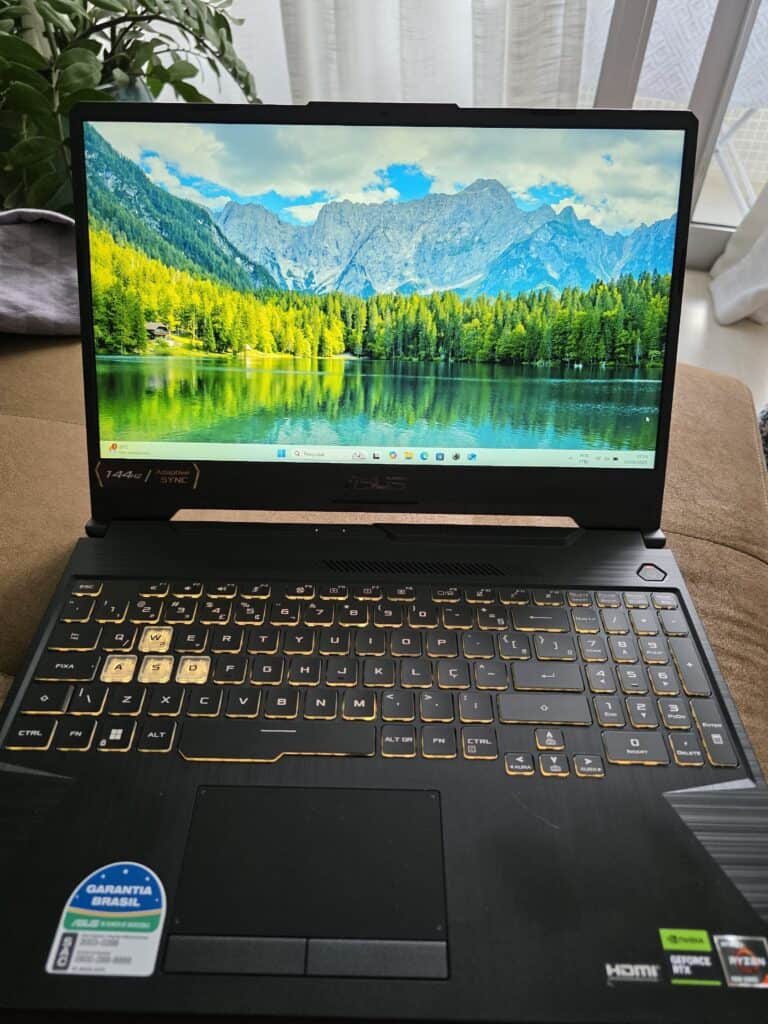 Equipado com o processador AMD Ryzen 7 7435HS (8 núcleos e 16 threads, até 4,5 GHz) e a placa de vídeo dedicada NVIDIA GeForce RTX 2050 com 4GB de VRAM GDDR6, o TUF A15 oferece desempenho já cansado para jogos em 1080p. A combinação de 16GB de RAM DDR5 e um SSD NVMe de 512GB garante carregamentos rápidos e multitarefa eficiente, mas vale lembrar que por padrão o modelo, nos sites que encontramos, vem com 8GB de RAM ao invés de 16GB. Fica o alerta que também não encontramos variante com essas especificações e sistema operacional Windows 11, vindo sempre com KeepOS, uma distro do Linux.