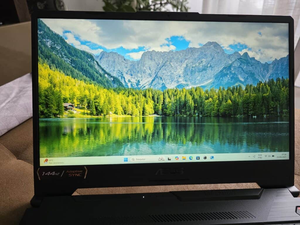 A tela de 15,6 polegadas do TUF A15 possui resolução Full HD (1920×1080), taxa de atualização de 144Hz, proporcionando imagens fluidas e nítidas durante os jogos, camada anti reflexo e adaptive sync. O painel IPS oferece ângulos de visão amplos e cores consistentes.