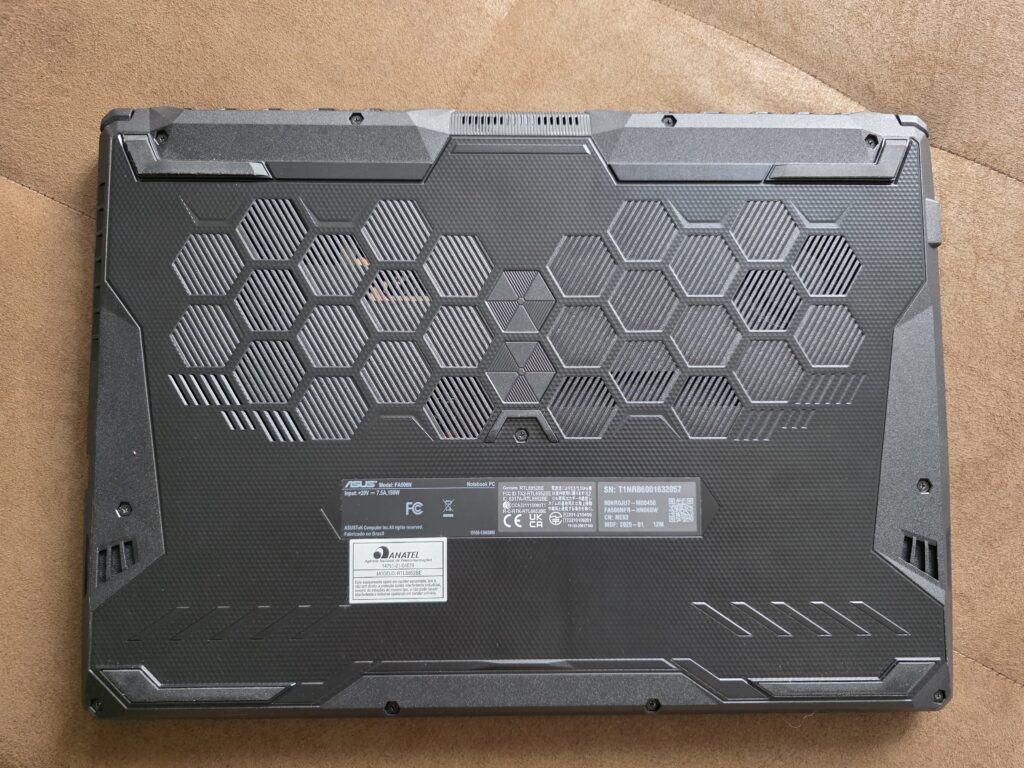 Para abrir o TUF A15 você não terá dificuldades, basta remover todos os parafusos e aplicar um pouquinho de força na parta traseira (onde tem as saídas de ar) para aos poucos ir soltando as travinhas da tampa inferior. Sempre bom ver notebooks gamers com essa característica de upgrades fáceis de se fazer.