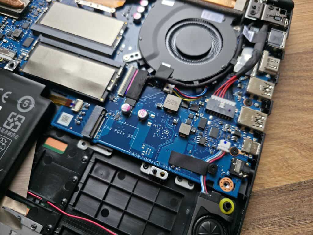 O design interno do TUF A15 facilita upgrades, com acesso simples aos slots de RAM e ao SSD. O notebook suporta até 32GB de RAM DDR5 e possui um slot M.2 adicional para expansão de armazenamento.