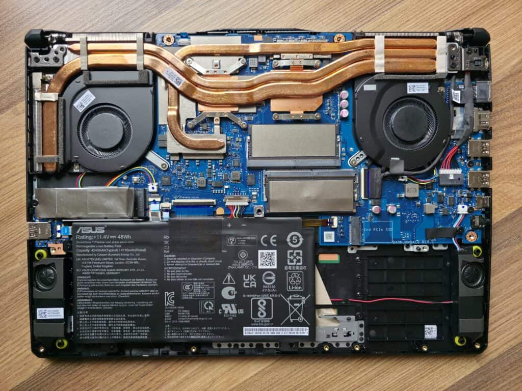 O sistema de resfriamento do TUF A15 é eficiente, mantendo as temperaturas da CPU e GPU dentro de limites seguros durante sessões prolongadas de jogo. Em testes de estresse, a CPU atingiu temperaturas próximas a 96°C, enquanto a GPU manteve-se em torno de 86°C. O ruído das ventoinhas é perceptível em cargas elevadas, mas fica até abaixo de outros modelos testados pelo site. A estrutura interna também permite manutenção e limpeza periódica, contribuindo para a longevidade do equipamento.