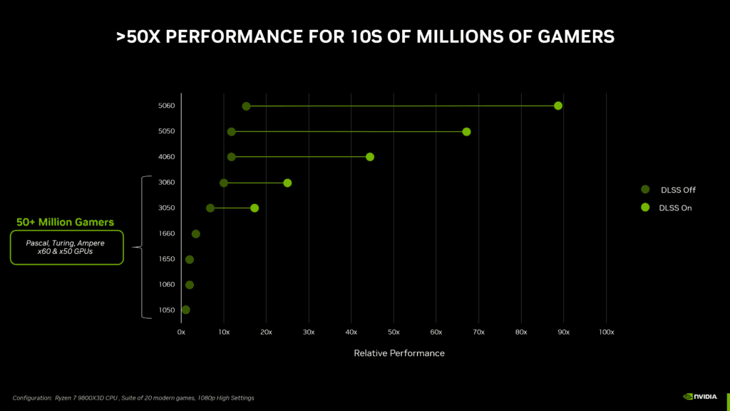 Em comparação com a RTX 3050 e a GTX 1650, a GeForce RTX 5050 promete um aumento significativo no desempenho, especialmente em jogos que utilizam DLSS 4. Para notebooks, as GPUs GeForce RTX 5050 já estão disponíveis globalmente, embora ainda não haja previsão de lançamento no Brasil. Os notebooks vêm com 8 GB de memória de vídeo GDDR7, que oferece eficiência energética superior.