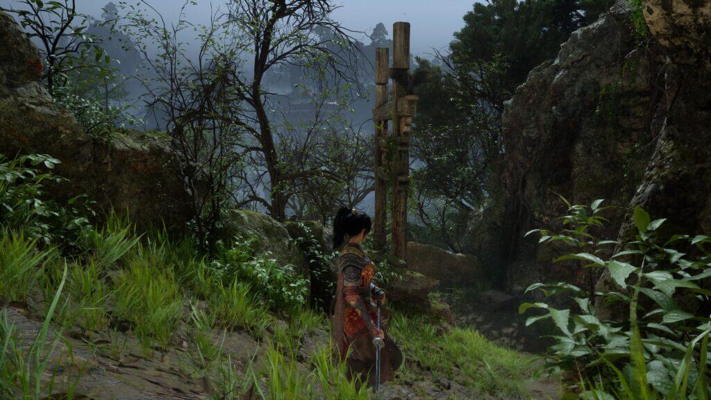 Visualmente, Wuchang: Fallen Feathers impressiona desde os primeiros momentos, especialmente em sua primorosa construção de mundo. A direção de arte estabelece um poderoso contraste: de um lado, cenários deslumbrantes com florestas, montanhas e arquitetura tradicional chinesa; do outro, a desolação de cavernas venenosas e ambientes grotescos. Essa dualidade entre a beleza e o horror define a identidade visual do jogo, refletindo com sucesso a atmosfera de uma distopia pós-guerra. A excelência gráfica se estende aos modelos de personagens e inimigos, que exibem um notável nível de detalhe e criatividade em seus designs.