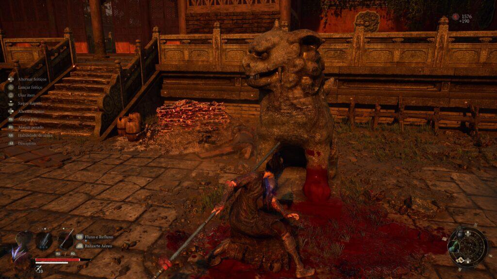 Contudo, o combate de Wuchang tropeça em um de seus maiores diferenciais: a animação dos ataques. Em uma tentativa de transmitir graciosidade, os movimentos da protagonista se tornam exagerados e floreados. Um simples golpe de espada, por exemplo, é executado com um giro que compromete o alcance e a eficácia do ataque. Essa escolha de design prejudica a responsividade e pode dificultar a adaptação do jogador, tornando a escolha de uma arma funcional uma tarefa árdua.