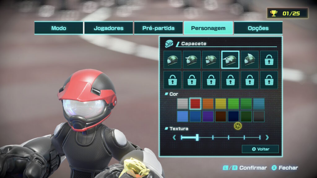 Drag x Drive vai direto ao ponto. Logo no primeiro acesso, o jogador é direcionado a um tutorial que apresenta todos os comandos essenciais para as partidas online. A curva de aprendizagem, no entanto, é acentuada. Há uma quantidade considerável de comandos para dominar, a começar pela movimentação: para impulsionar a cadeira para a frente, é preciso deslizar os dois Joy-Cons simultaneamente, como se estivesse girando as rodas com as mãos. A velocidade varia conforme a intensidade do movimento. Para virar, basta mover apenas o controle correspondente à direção desejada.