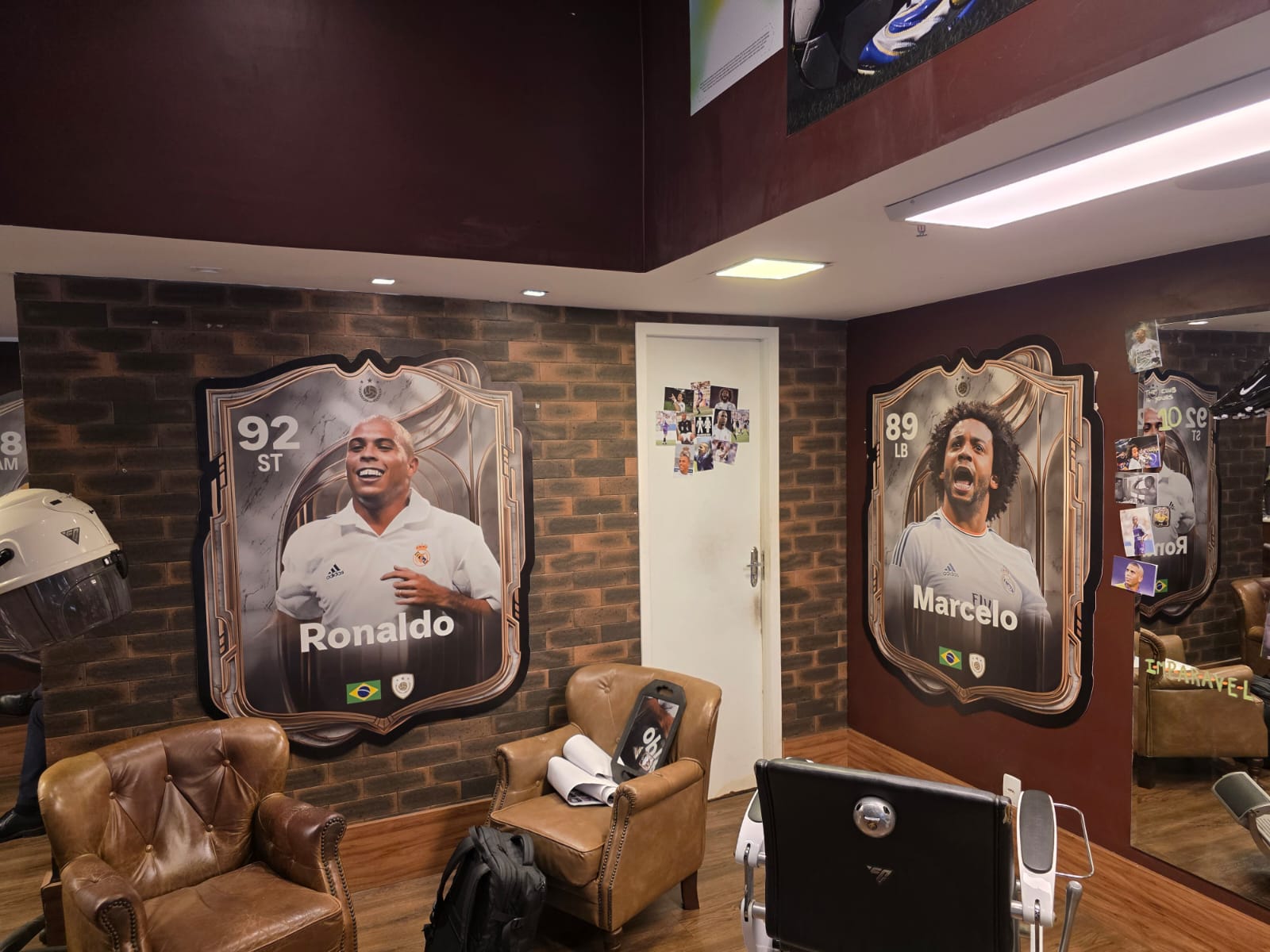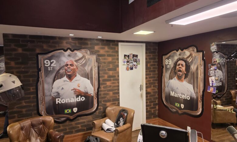 A ação acontece em uma barbearia que foi completamente transformada pelo universo de EAFC, trazendo uma experiência única e super criativa para os fãs de futebol. Logo de cara, o ambiente já chama atenção: paredes decoradas com cartas dos novos Icons – entre eles Ronaldo Fenômeno, Marcelo e Sissi –, além de camisas de times, troféus e vários itens que celebram o esporte.