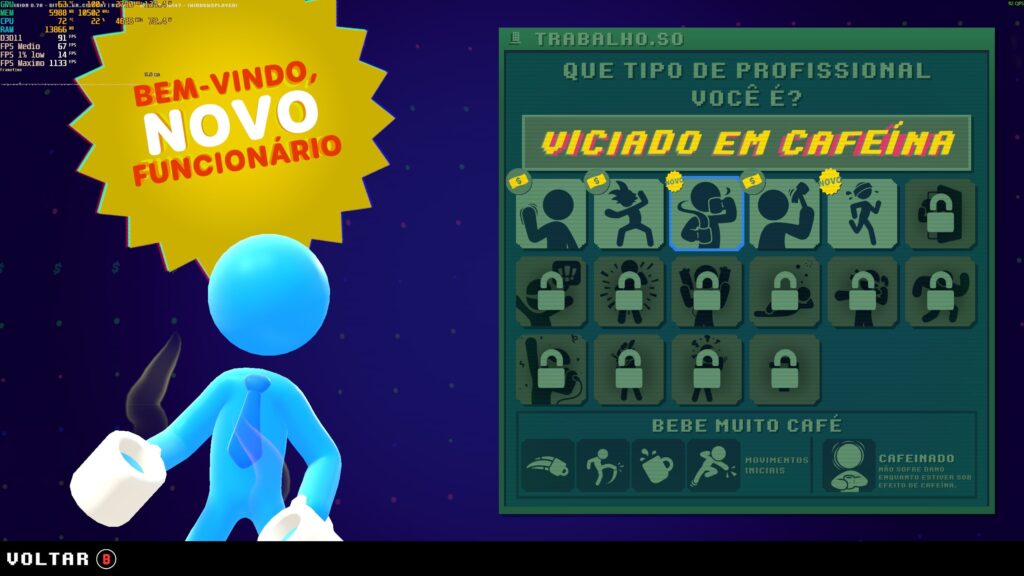 Outro ponto observado é que a forma de exibição do jogo (tela cheia, janela ou janela em tela cheia) influencia diretamente no desempenho, algo incomum e que reforça a impressão de que ainda existem ajustes a serem feitos. Como o título está em acesso antecipado, é provável que essas inconsistências sejam corrigidas no futuro, mas no estado atual afetam a experiência e a fluidez do gameplay.