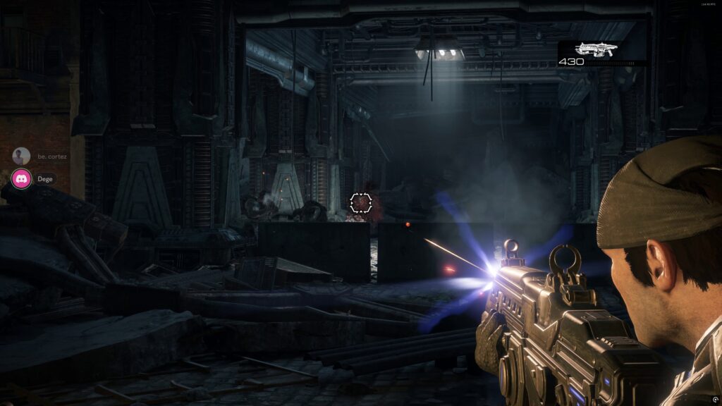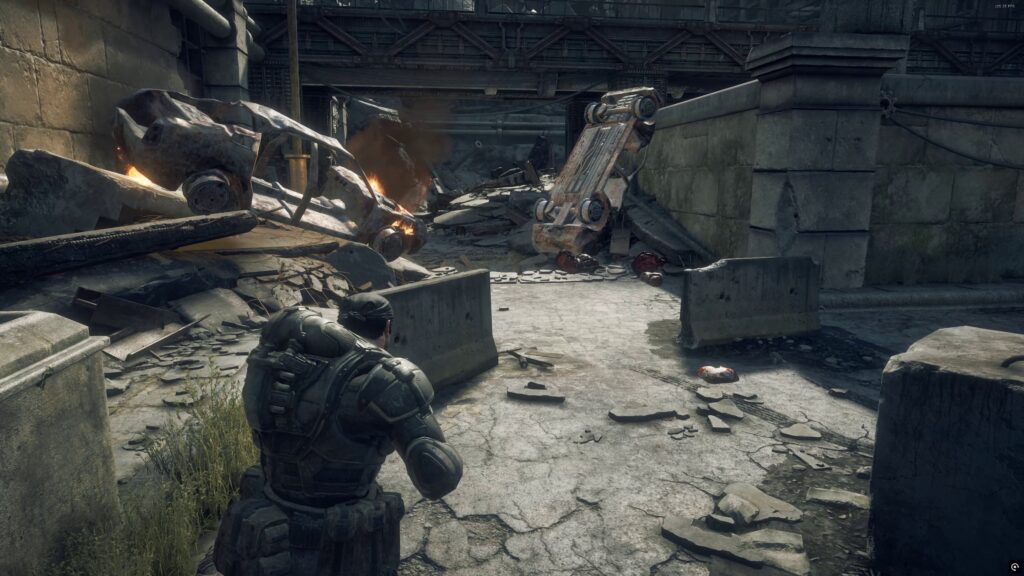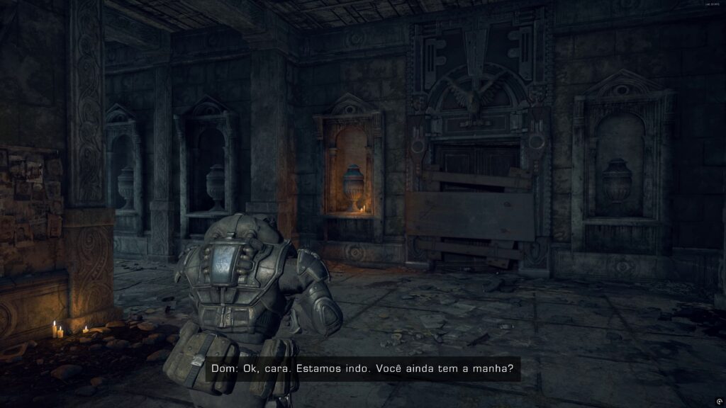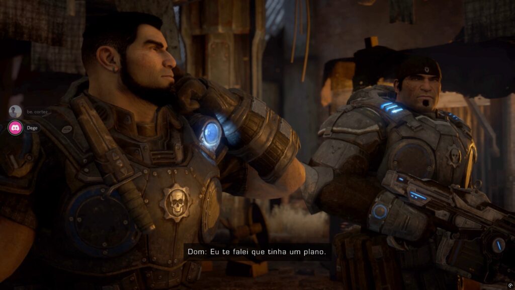 Claro, nem tudo é perfeito. A nova roupagem gráfica, construída sobre uma engine mais moderna, a Unreal Engine 5, cobra seu preço. Gears of War: Reloaded é um jogo extremamente pesado para o que apresenta na tela. PCs medianos podem ter dificuldades para alcançar taxas de quadros elevadas sem sacrificar a qualidade visual, o que é um ponto a se considerar. Além disso, encontrei um bug bastante peculiar: com a sincronização vertical desligada, o jogo apresenta problemas de “frame pacing”, com engasgos que quebram a fluidez. Felizmente, ao ligar a função, o problema desaparece completamente e o jogo roda de forma perfeita. É um detalhe estranho, mas com uma solução simples.