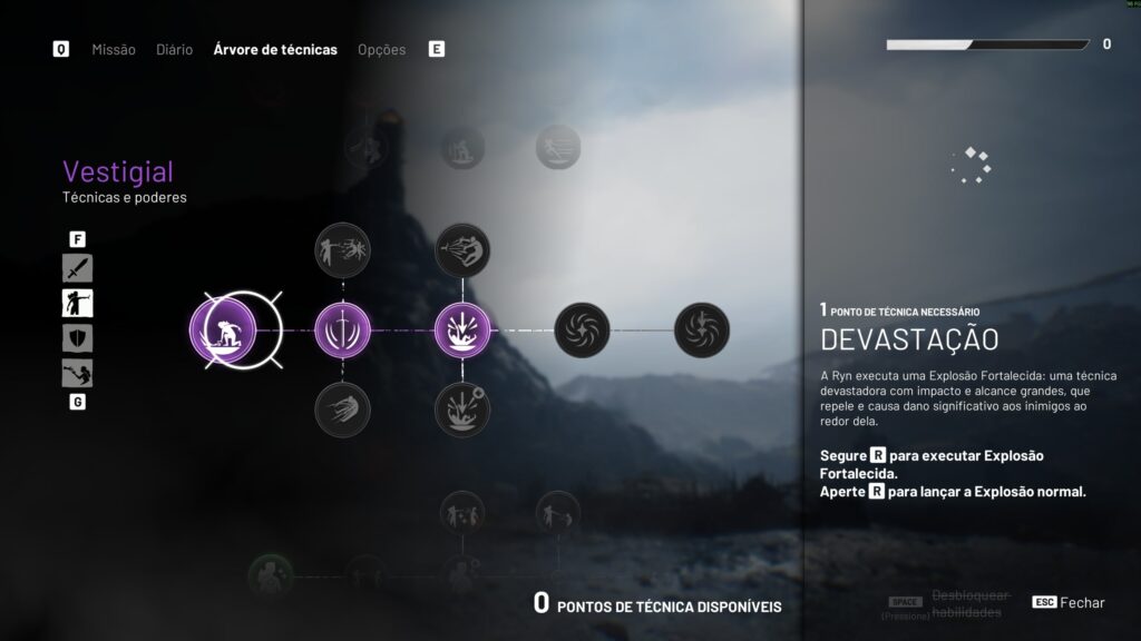 Há também uma árvore de habilidades, que amplia os poderes de Ryn como Vestigal. Ela pode manipular inimigos e objetos usando mana, empurrando adversários contra outros ou até derrubando-os de penhascos — uma solução tão eficaz que chega a ser cômica, evidenciando o quão quebrado o sistema de combate pode parecer. Entre as evoluções estão ataques carregados, disparos de energia e counters aprimorados que atordoam inimigos em área. Apesar da variedade, o combate permanece apenas mediano.