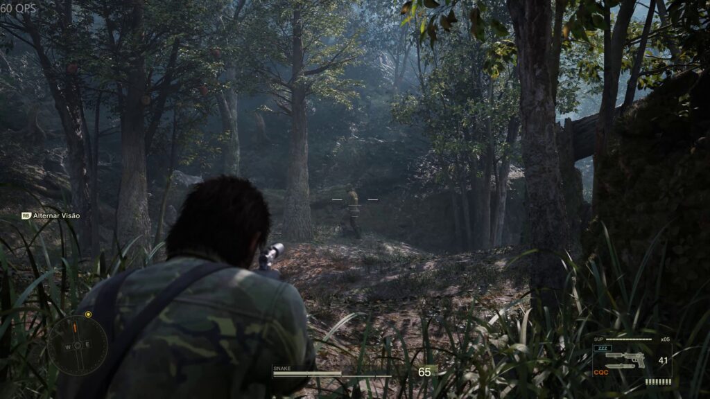 A mudança mais óbvia e impactante em Metal Gear Solid Delta são os gráficos. O jogo foi completamente refeito usando a Unreal Engine 5, e o resultado é fantástico. A selva russa nunca pareceu tão densa, viva e perigosa. Cada folha de grama se move quando você passa, a luz do sol por entre as árvores e os modelos dos personagens são de um realismo estilizado impressionante. É possível ver os poros e as rugas nos rostos, o que dá uma carga emocional muito maior para as cenas da história.