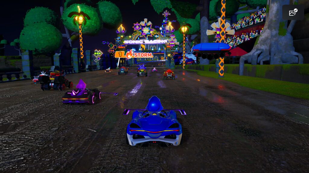 Se o campeonato traz intensidade e criatividade, o mesmo não pode ser dito do modo parque, de corrida voltado para o multiplayer. Nele, as pistas já conhecidas são reutilizadas com objetivos alternativos, como coletar mais anéis, acumular turbos ou acertar mais itens. Apesar da proposta de variar a jogabilidade, na prática o modo não oferece nada realmente novo.