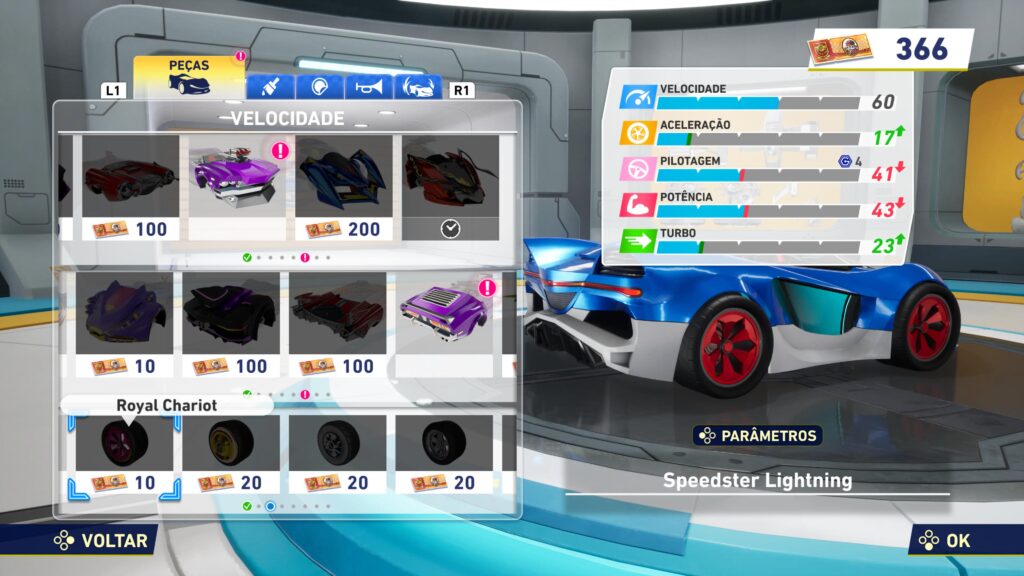 A customização vai além. Cada corrida ou desafio rende tickets, que funcionam como a moeda in-game usada para desbloquear peças e personalizações. O nível de granularidade impressiona: desde ajustes no design dos carros até alterações funcionais que afetam o desempenho. Tudo que o jogador faz dentro do jogo, mesmo pequenos detalhes como coletar anéis durante uma corrida, alimenta esse ciclo de progressão.