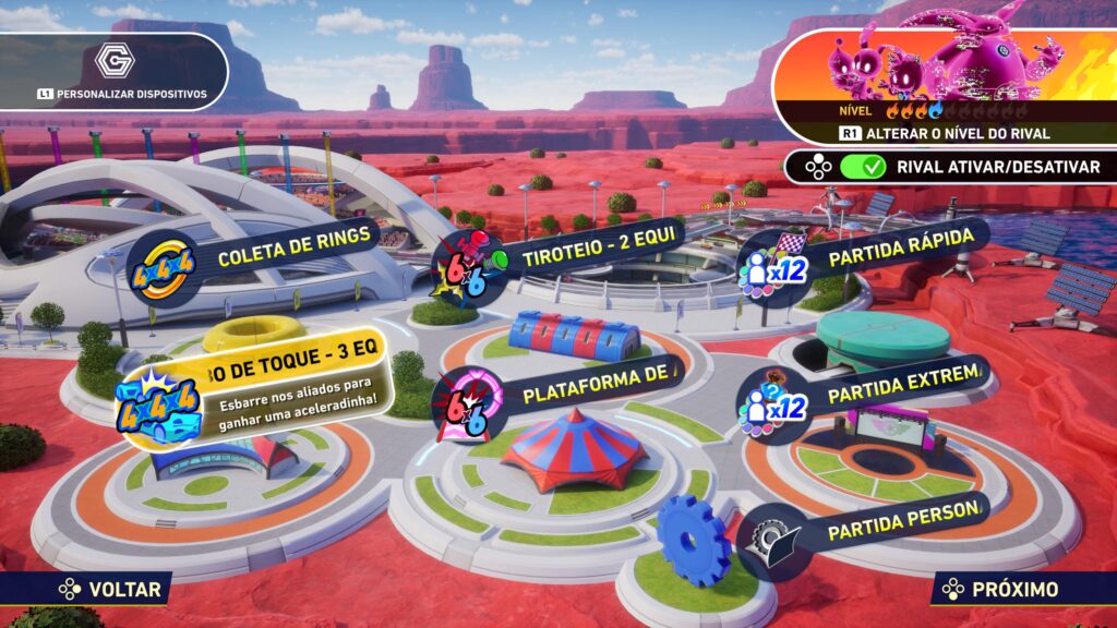 No coração de Sonic Racing CrossWorlds estão os dois modos principais de jogo: o tradicional campeonato de corridas e um segundo modo voltado ao multiplayer (parque de corrida).