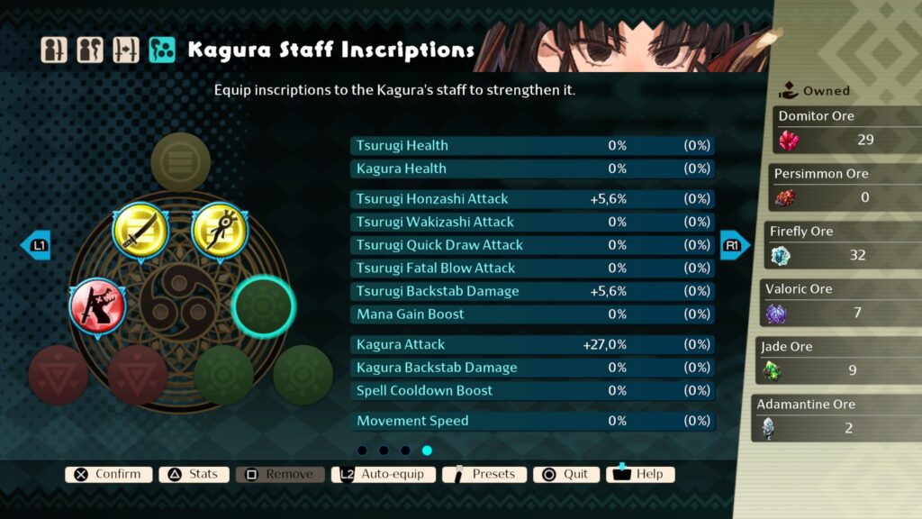 O desafio está em controlar ambos simultaneamente. Com o R1, você desfere os ataques do Tsurugi, que pode alternar entre duas espadas com um “saque rápido” (Triângulo). As magias do Kagura são ativadas com L2 e R2. Ações como a esquiva (L1) e um golpe poderoso chamado “Fatal Blow” (Quadrado) completam o arsenal de movimentos. Essa combinação de comandos exige que o jogador enfrente hordas de inimigos e chefes que espreitam em cada fase.