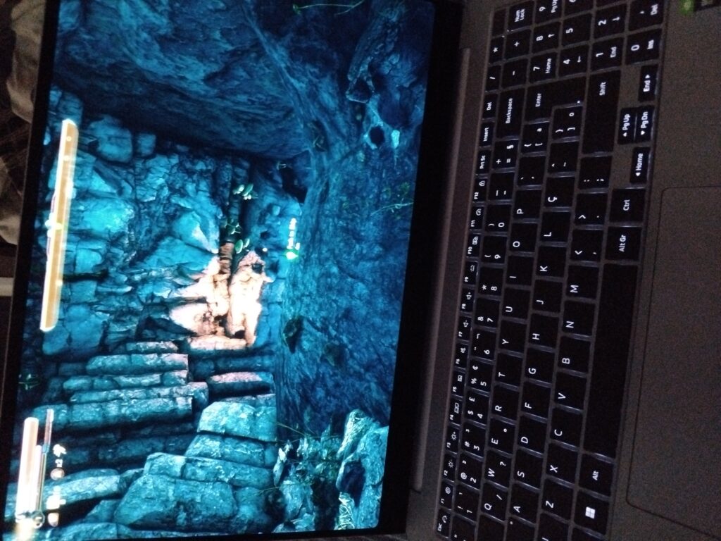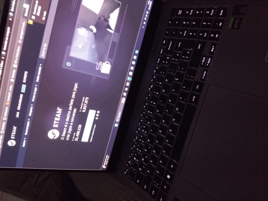 No entanto, essa potência em um chassi tão fino tem seu preço. Sob carga intensa, o notebook aquece consideravelmente, especialmente na parte inferior, tornando o uso no colo desconfortável e desaconselhável durante as sessões de jogo. O sistema de refrigeração, embora eficaz, também se torna bastante ruidoso nos momentos de pico.