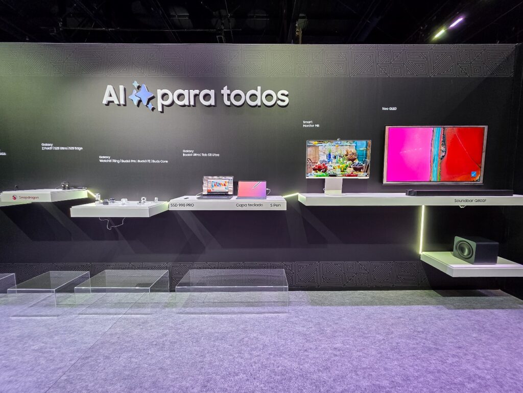 Os visitantes também têm a oportunidade de testar as recém-lançadas TVs Vision AI, incluindo a TV Vision AI Neo QLED QN90F e a OLED S95F. A Samsung apresenta ainda uma linha de Soundbars para completar a experiência audiovisual.