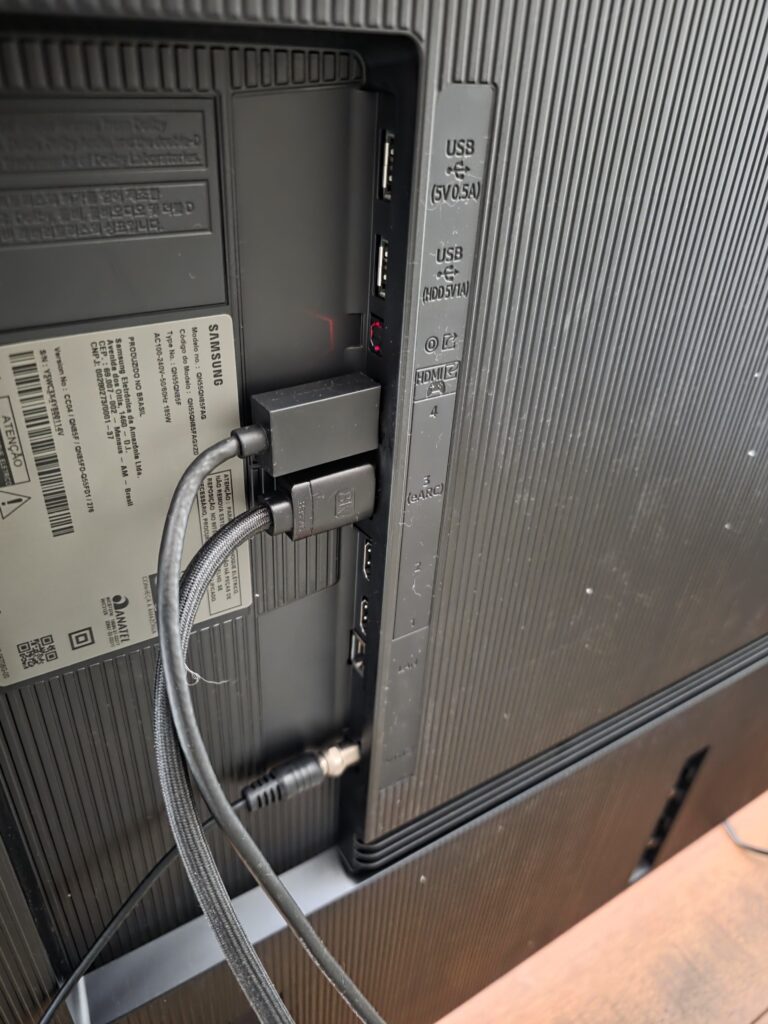 É aqui que a QN85F mostra que deve ser uma candidata ao público gamer. O suporte a 4K a 144 Hz funciona, e, ao contrário de tantas TVs que só têm duas 4K 120 Hz ou 4K 144 Hz, aqui as quatro HDMI são 2.1 e aceitam sinal de alta taxa. Some VRR, com FreeSync Premium Pro, e ALLM, e você tem uma tela que se comporta como monitor gamer gigante para PC, sem sacrificar a experiência dos consoles.