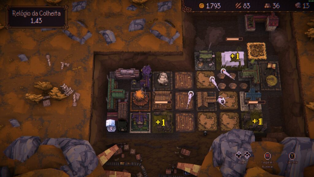 A cada nova run, o jogo equilibra bem o desafio e a sensação de progresso, com a vila funcionando como um suporte para o avanço dentro das dungeons. O resultado é um loop de jogabilidade sólido, que mistura estratégia e ação em doses equilibradas se tornando algo difícil de largar.